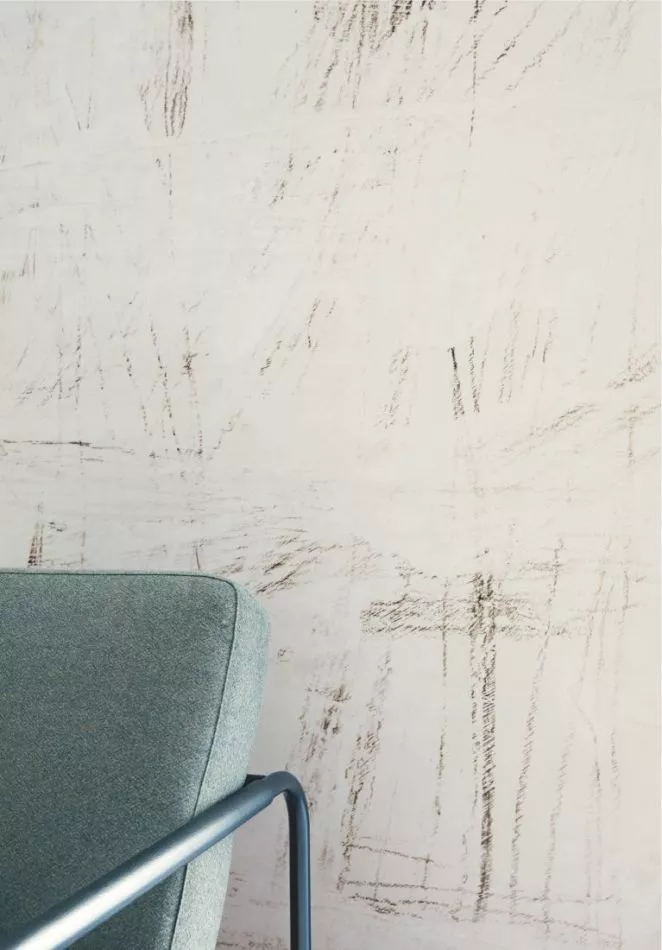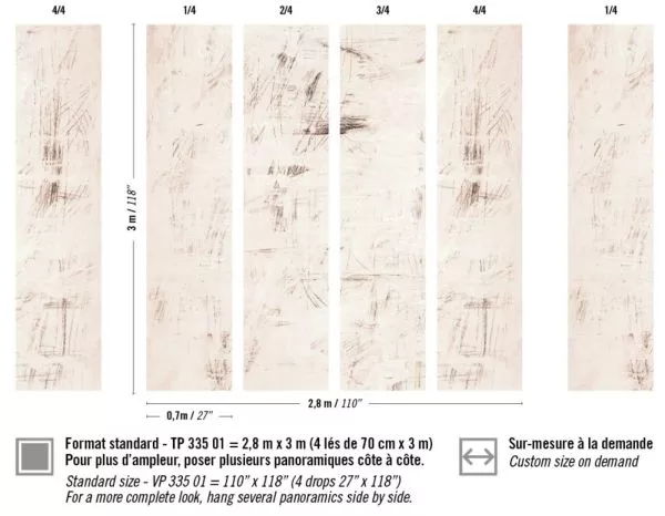 Diese Kollektion, wie auch bei Pleats, widmet sich ganz und gar dem Material Papier. Hier werden echte Papierwerke aus unserem Atelier (gemalte oder skizzierte Collagen) im Druck reproduziert und so entstehen einzigartige, täuschend echte Effekte und Transparenzspiele. Die Farbpalette mal hell und fast transparent, mal dicht und pigmenthaltig, aber warm und freundlich: Terrakotta, Pflanzengrün, Moos, Weißtöne, pudriges Rosa, kupferfarben...