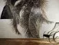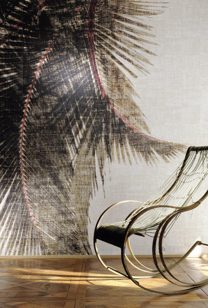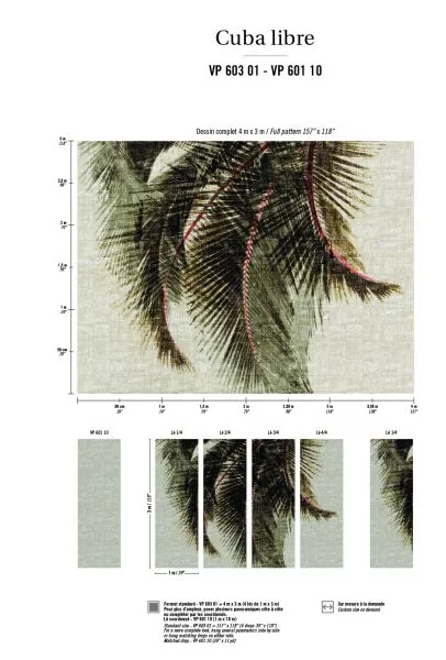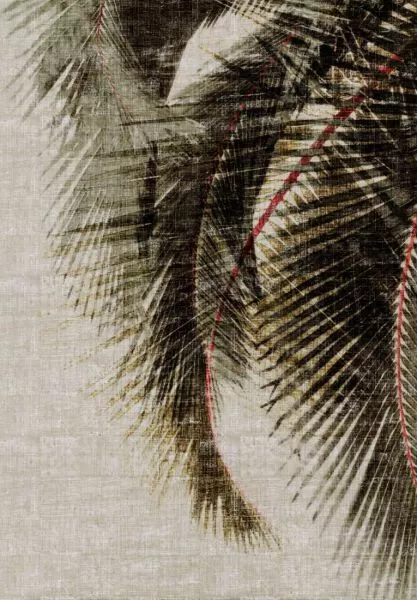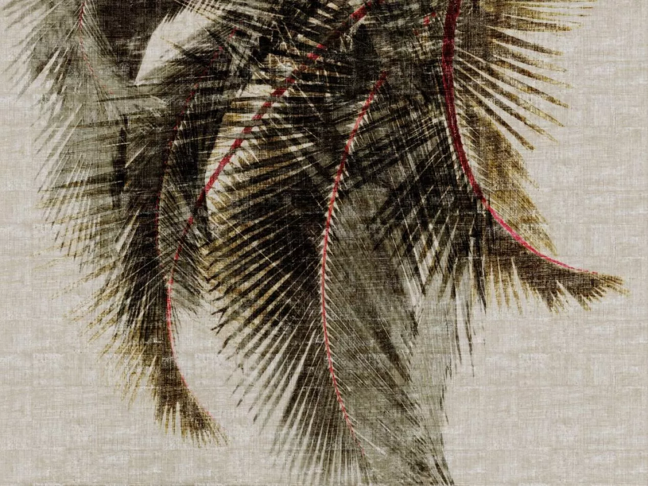 Motiv aus Palmblättern mit roter Mittelrippe. Inspiriert von den Palmen Havannas.