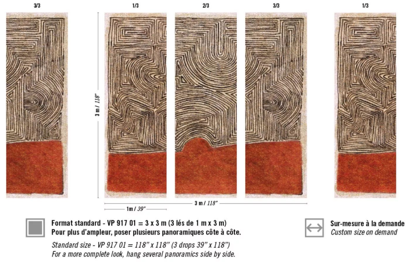 Abmessungen +/- 3% : Wandbild 3m x 3m erhältlich in 3 Bahnen, je 1m Breite oder auf Anfrage ihr Wunschmaß