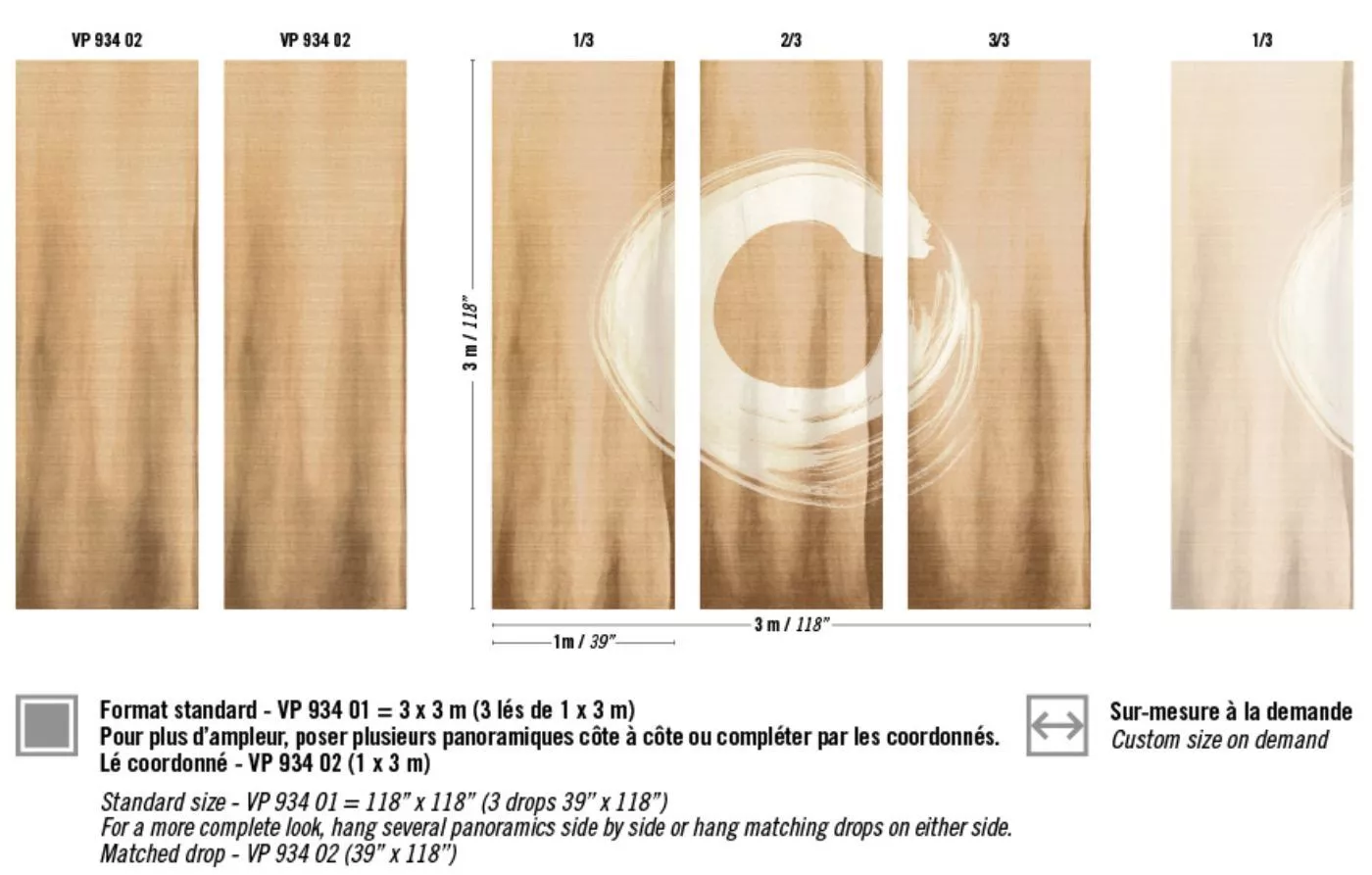 Abmessungen +/- 3% : Wandbild 3m x 3m, erhältich in 3 Bahnen je 1m Breite
