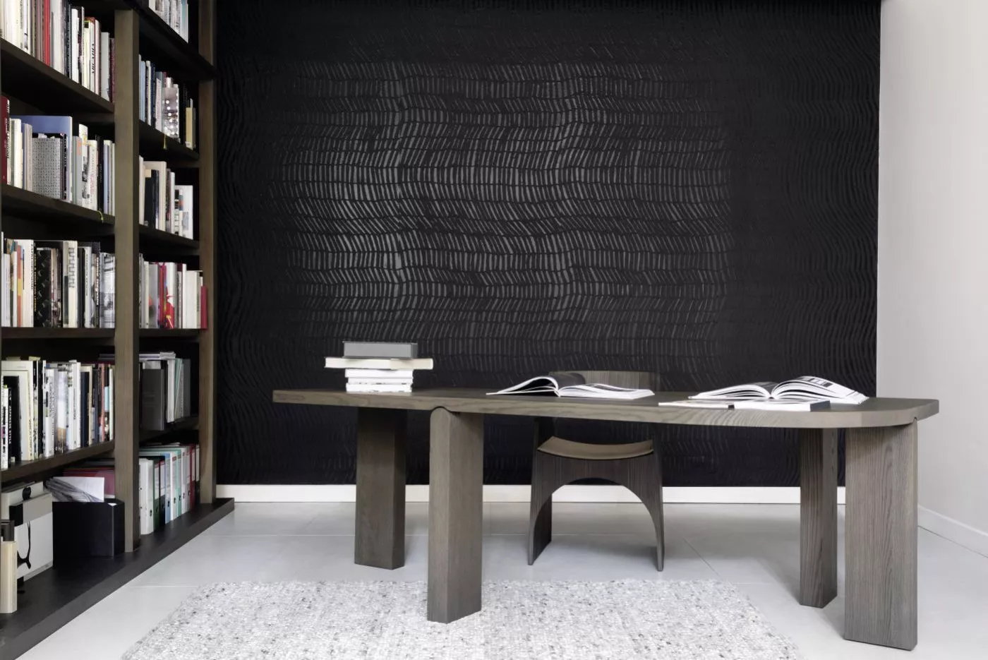 Diese Kollektion ist aus dem Verlangen heraus entstanden, Papier aus unserer Materialsammlung einzusetzen. Es bedarf eines besonderen Talents, Pappmaschee zu verarbeiten, es ist widerspenstig und verlangt extremes Können. Handverarbeitet zeichnet es Spuren in die Kreationen, Motive und Flächen, matt gegenüber glänzend. In den neutralen und dunklen Tönungen findet man glitzernde Streifen und metallische Splitter. Alles ist handgearbeitet und einmalig in seiner Verschiedenheit. So wie ein Kunstgegenstand, wie ein Gemälde.