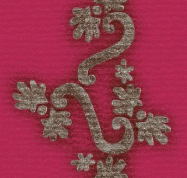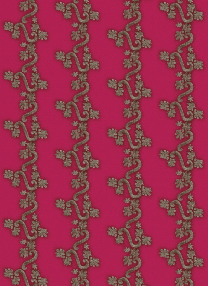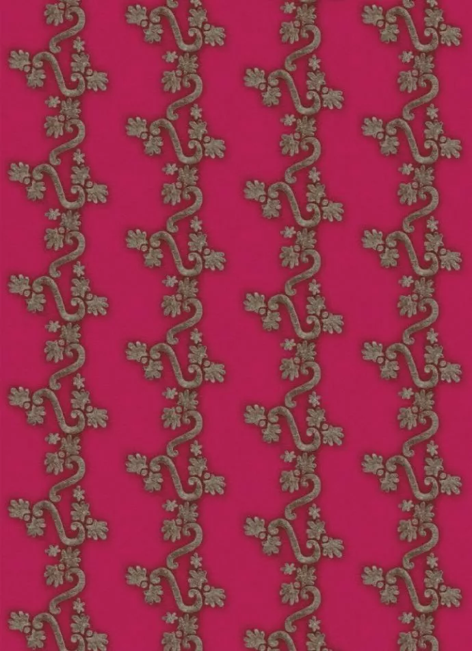 Üppige goldfarbene Soutachestickereien auf einer Palette gewagter Farbtöne.
