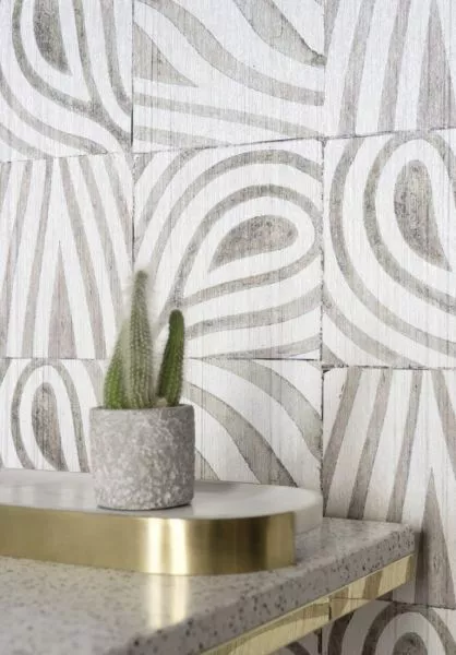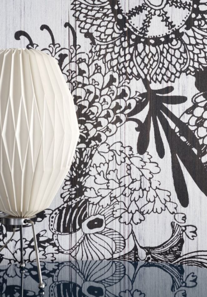 Wie in einem Fil-à-Fil-Gewebe fügen sich ausdrucksstarke Farben zu geometrischen Mustern und beleben den Horizont. Die 70er geben hier den Ton an. Sie finden ihr Echo in einem riesigen floralen Muster, mit dem einfarbige Bahnen kontrastieren. Ganz dicht am künstlerischen Schaffensprozess erleben wir in den Stoffen den harmonischen Zusammenklag von Natur und Farbe.