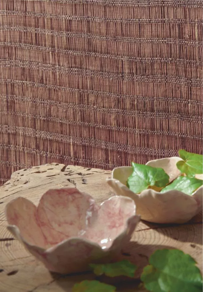 Wandverkleidung, 100% Naturbast, handgefertigt. Schick und gemütlich wirken die mehrfarbigen, einfarbigen oder Ton-in-Ton-Gewebe. Sie vermitteln einen matten Eindruck.