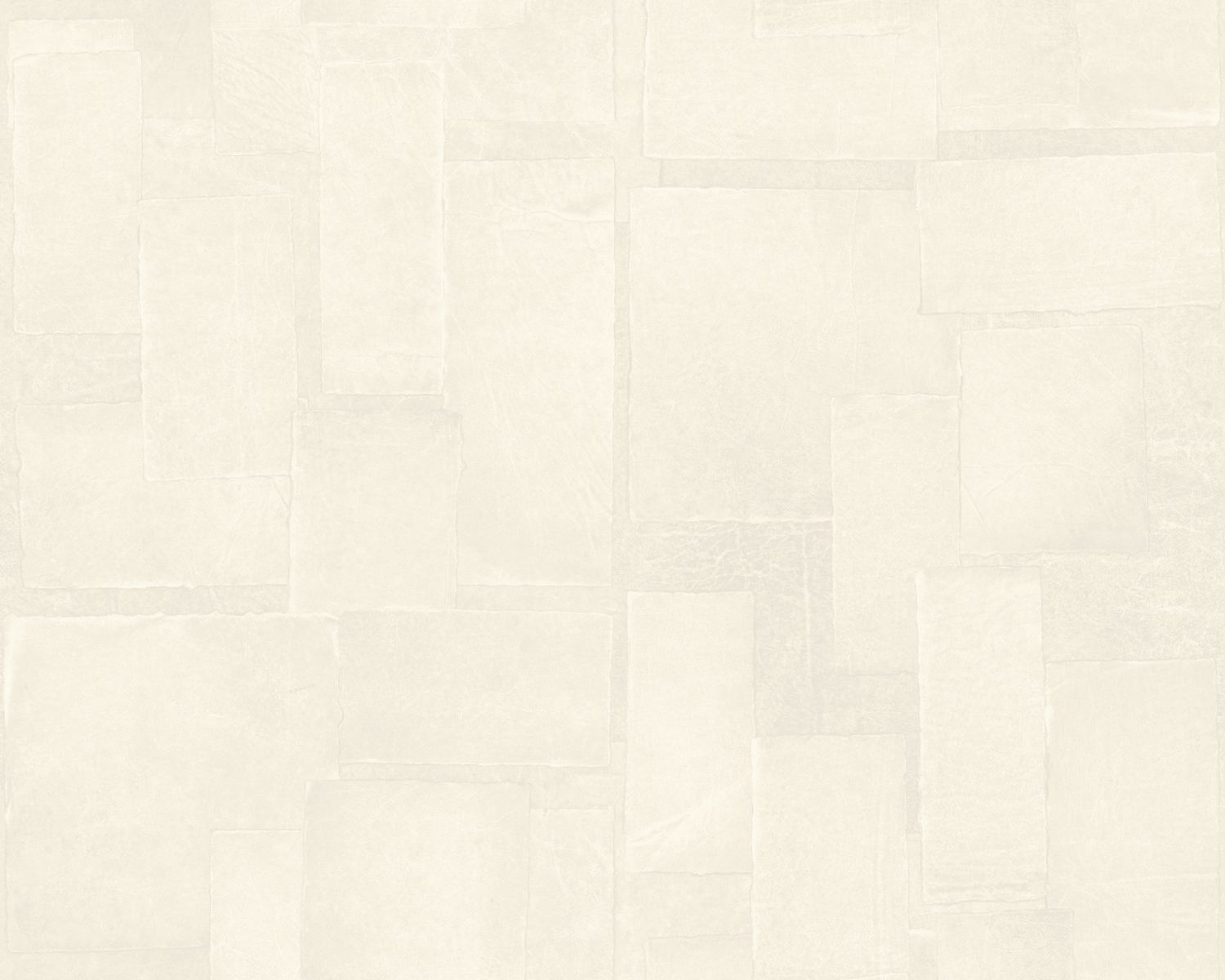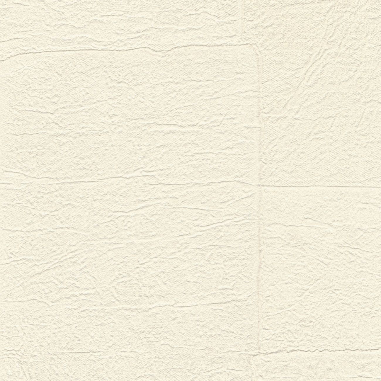 Beschreibung: Präge-Vinyl-Tapete mit der Optik von geklebten Papieren.