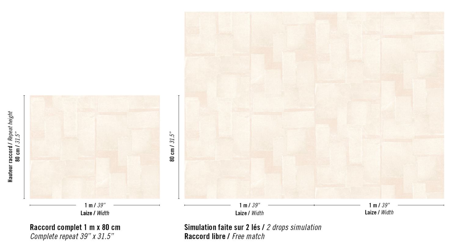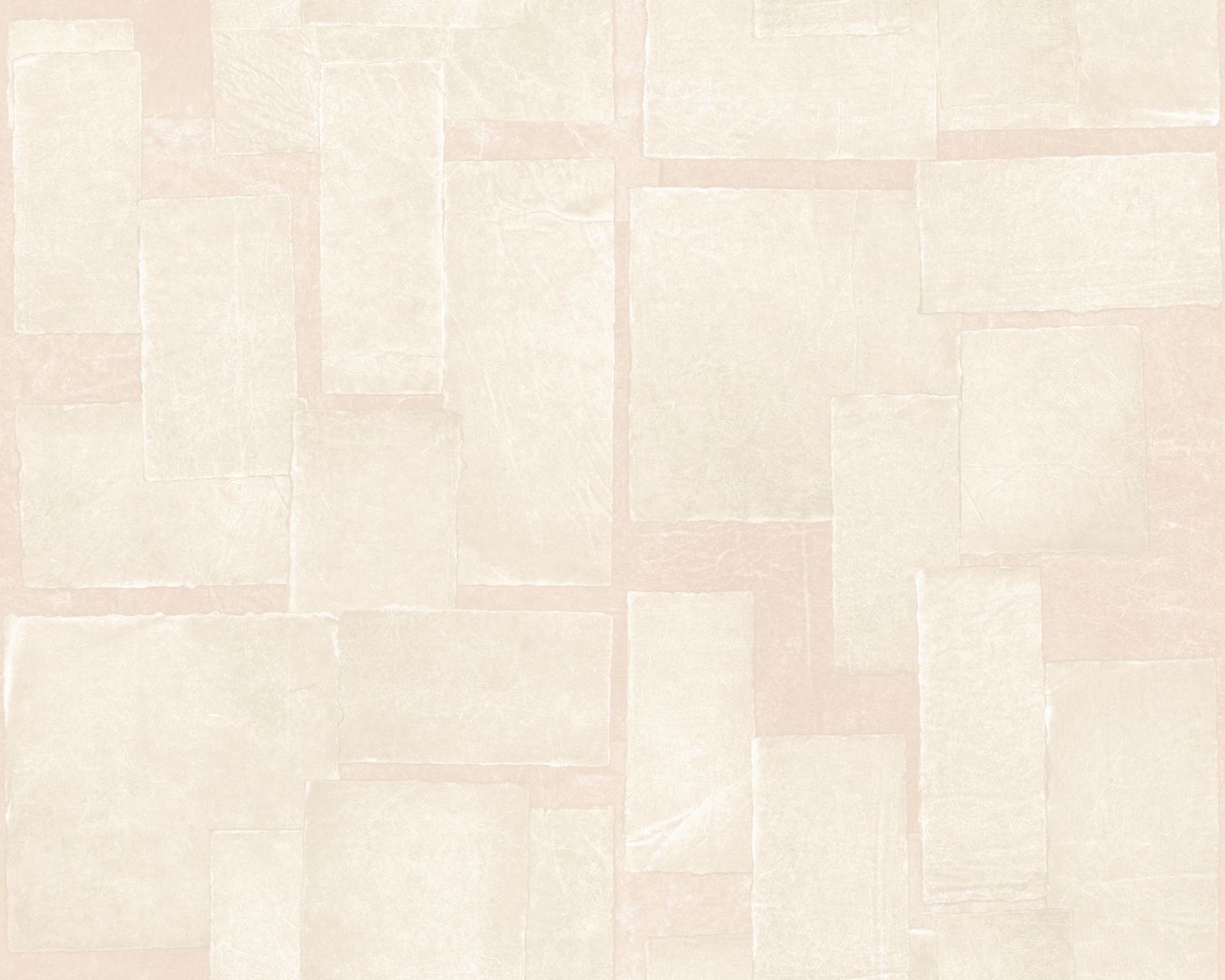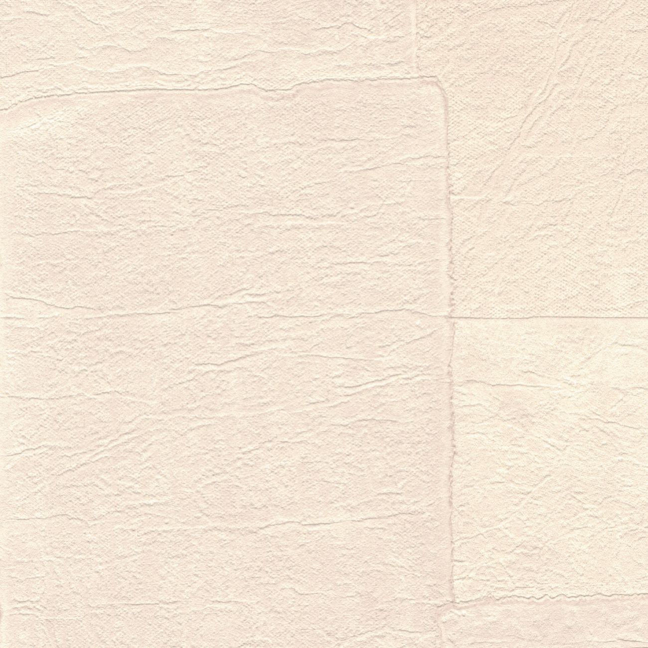 Beschreibung: Präge-Vinyl-Tapete mit der Optik von geklebten Papieren.