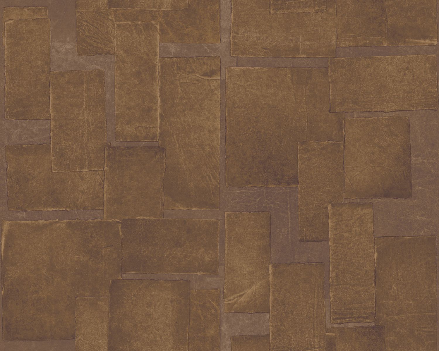Beschreibung: Präge-Vinyl-Tapete mit der Optik von geklebten Papieren.