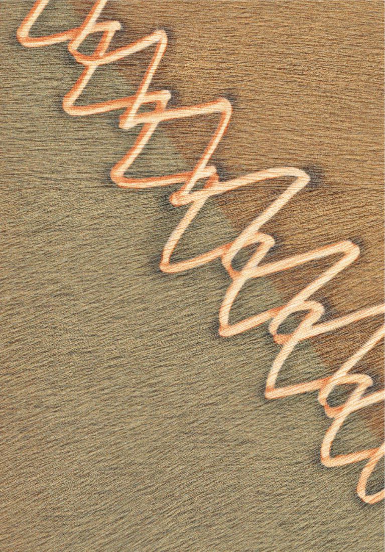 In dieser Kollektion dient die Kunst als visuelle Aufzeichnung von Bewegung: Die Gesten der Künstler werden durch die verspielte, kartografische Komposition von Hunderten winziger Gipsrillen eingefangen.
