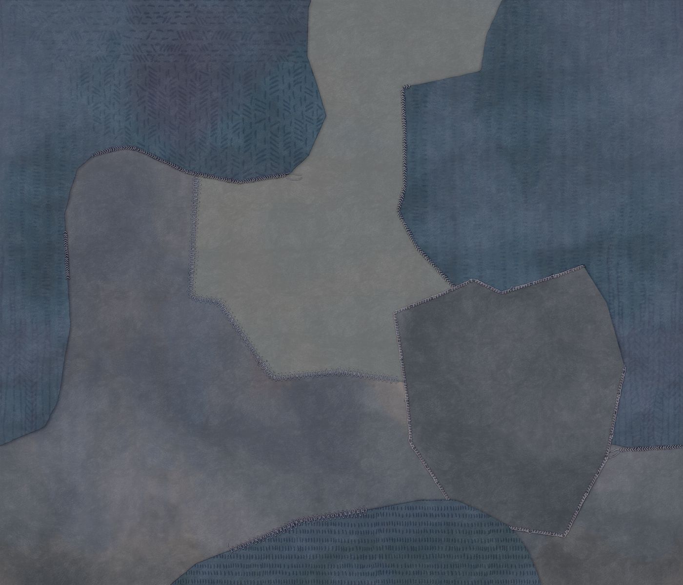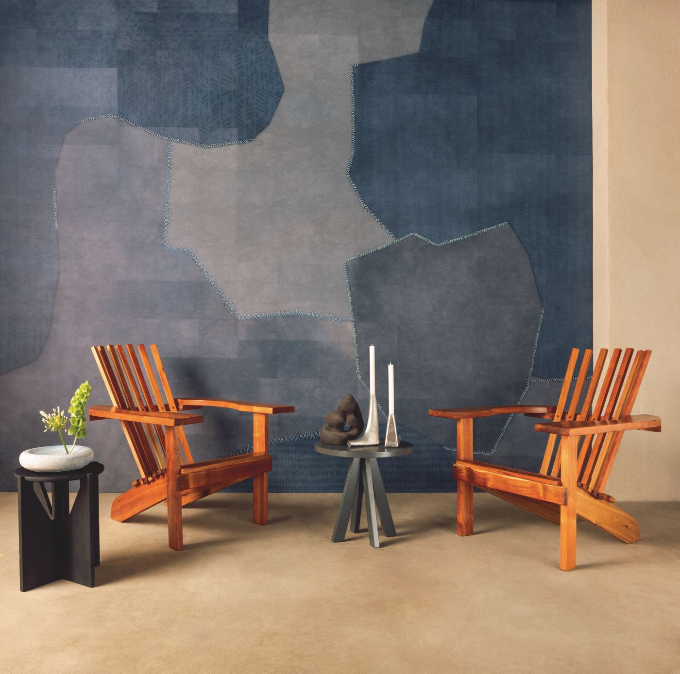 In dieser Kollektion dient die Kunst als visuelle Aufzeichnung von Bewegung: Die Gesten der Künstler werden durch die verspielte, kartografische Komposition von Hunderten winziger Gipsrillen eingefangen.