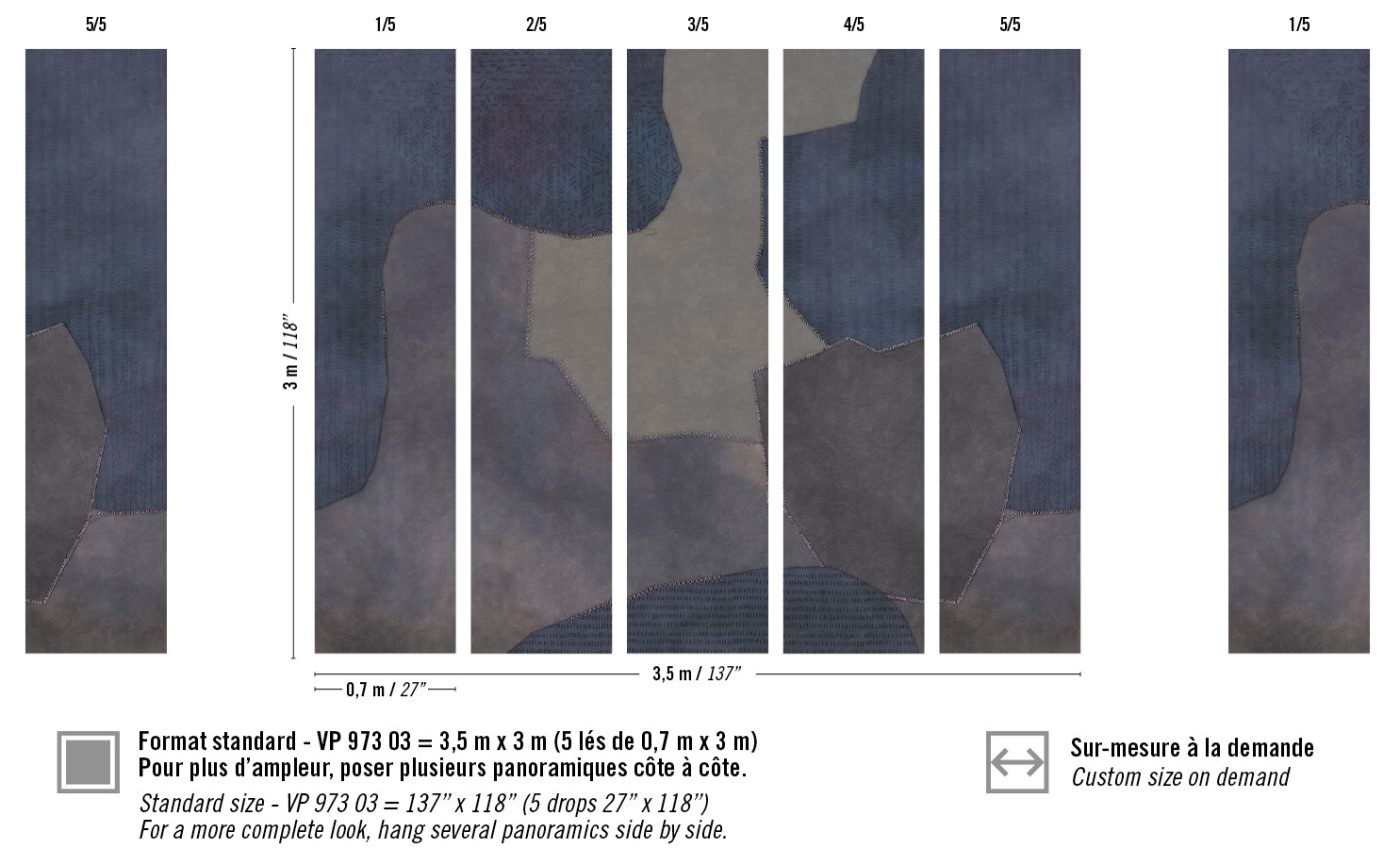 Diese Vinyl-Kreationen reproduzieren getreu das Aussehen und Gefühl von wilden Tierfellen, weichen manchmal davon ab, um ihre rohe Energie beizubehalten. Eine Reise durch einzigartige Texturen, geschaffen durch eine spezifische technologische Kombination von Tiefdruck- und Prägezylindern. 5 Panoramadrucke vervollständigen die Kollektion.