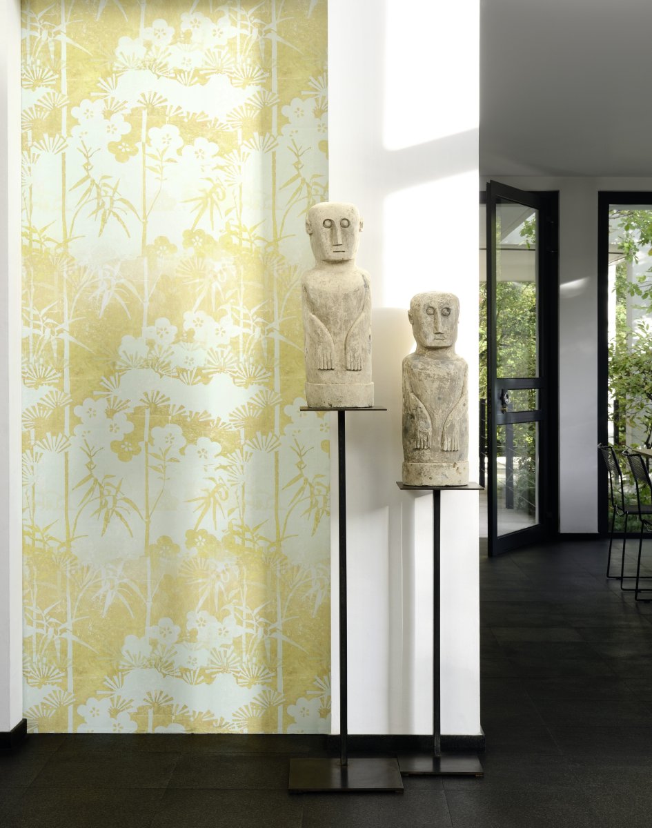 Das Universum ist in Bewegung. Iris, Vögel, Kirschblüten, Fische verlassen die berühmten Kimonos aus dem Land der aufgehenden Sonne und beseelen mit ihren Motiven die Wände. Der Raum wird lebendig und strahlt die anmutige Sanftheit japanischer Farben aus. Die Pracht dieser Panoramagemälde nimmt uns in einer nicht enden wollenden, einer unendlichen Geschichte gefangen ...