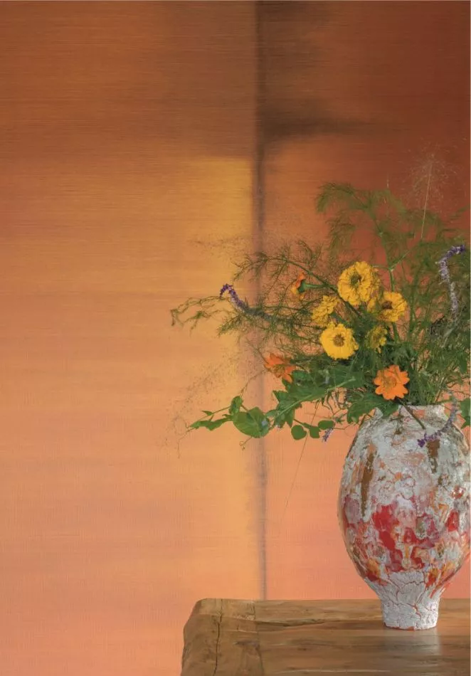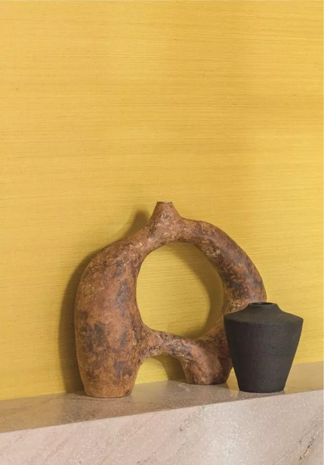 In der Kollektion Tribus schaffen Sisal und Arrowroot eine neuartige und mutige Vision von Pflanzengeweben, weit entfernt vom Folkloristischen. Die Wandpanoramen wurden in Handarbeit auf Seide vorgezeichnet und erst dann auf die Naturfasern gedruckt.
