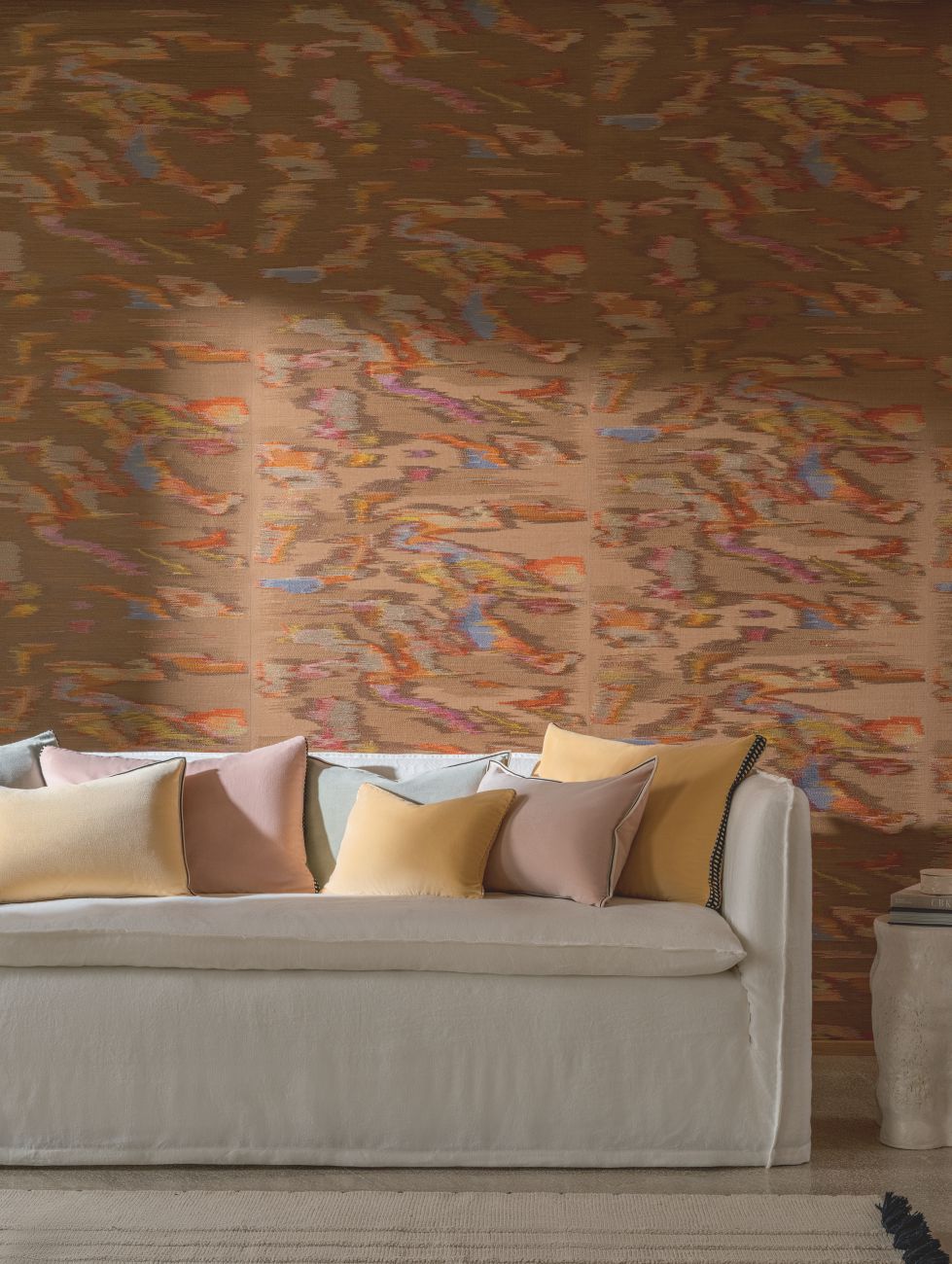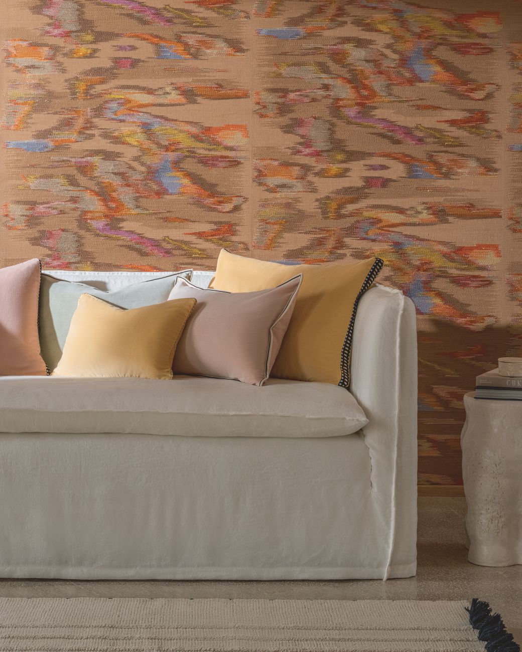 Stickereien wie Ikatmuster lassen uns träumen und erinnern an orientalische Karavanen; es sind Gewebe, die Eleganz und Bohème in sich vereinen.