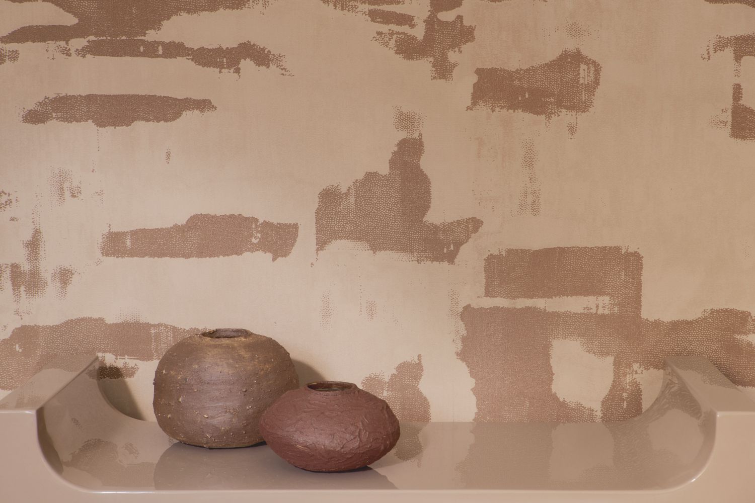 Diese beruhigende, greifbare Poesie entfaltet sich in einer Farbpalette aus Beige, Ocker und dunklem Kaffee – veredelt durch lebendige Akzente von Waldgrün und geräucherter Paprika.
