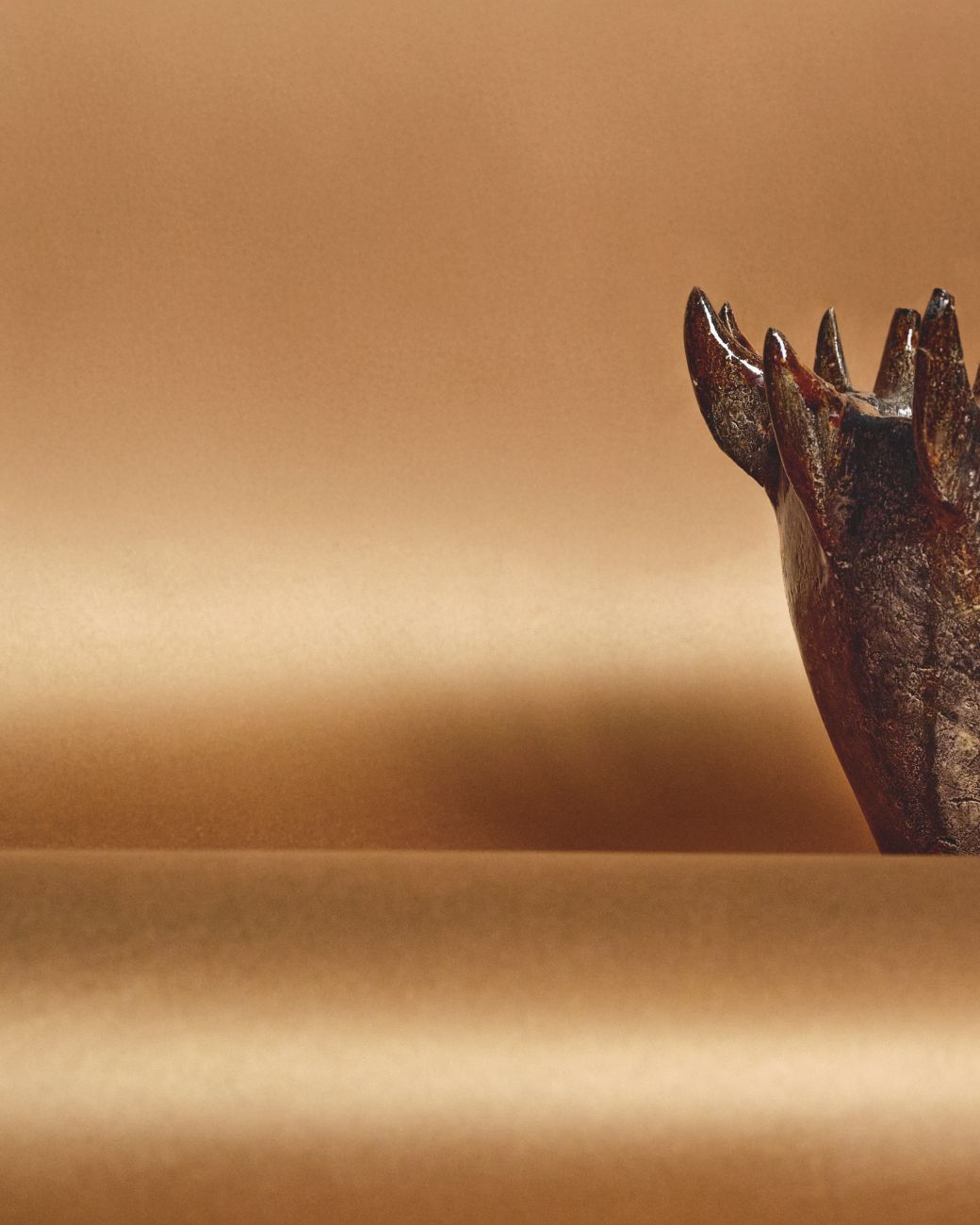Diese beruhigende, greifbare Poesie entfaltet sich in einer Farbpalette aus Beige, Ocker und dunklem Kaffee – veredelt durch lebendige Akzente von Waldgrün und geräucherter Paprika.
