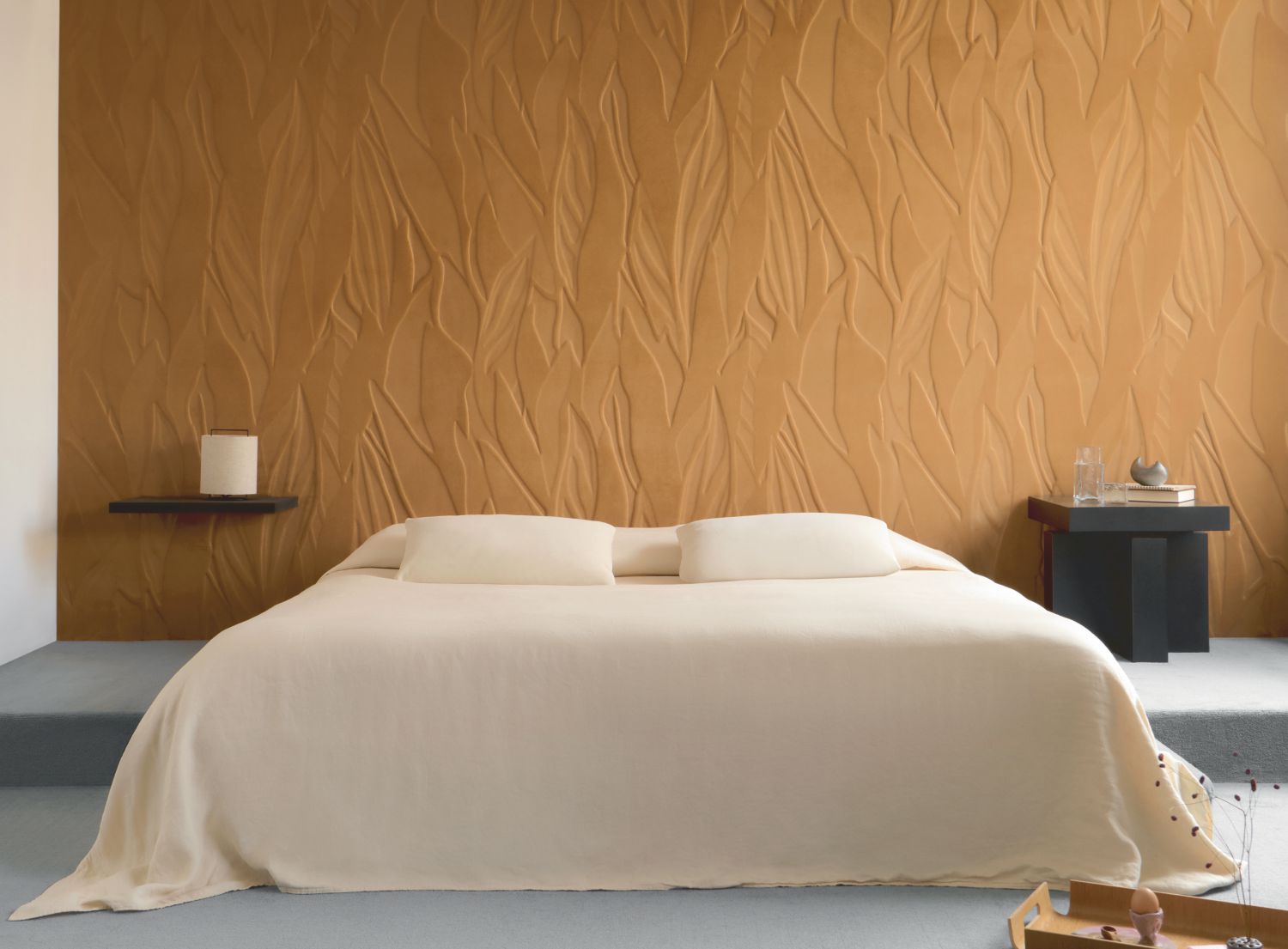 Das Licht erwacht in einer monochromen Welt. Es tanzt über Oberflächen, versinkt in die haptische Tiefe dreidimensionaler Strukturen und legt sich sanft in die Falten von geripptem Samt. Es gleitet über strahlende Flächen, findet Ruhe im Minimalismus schlichter Samte und tonaler floraler Silhouetten, während es im Kontrast zu Wildleder aufleuchtet.