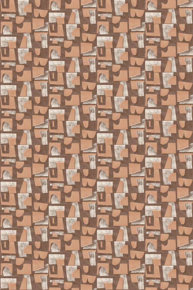 Diese Kollektion, wie auch bei Pleats, widmet sich ganz und gar dem Material Papier. Hier werden echte Papierwerke aus unserem Atelier (gemalte oder skizzierte Collagen) im Druck reproduziert und so entstehen einzigartige, täuschend echte Effekte und Transparenzspiele. Die Farbpalette mal hell und fast transparent, mal dicht und pigmenthaltig, aber warm und freundlich: Terrakotta, Pflanzengrün, Moos, Weißtöne, pudriges Rosa, kupferfarben...