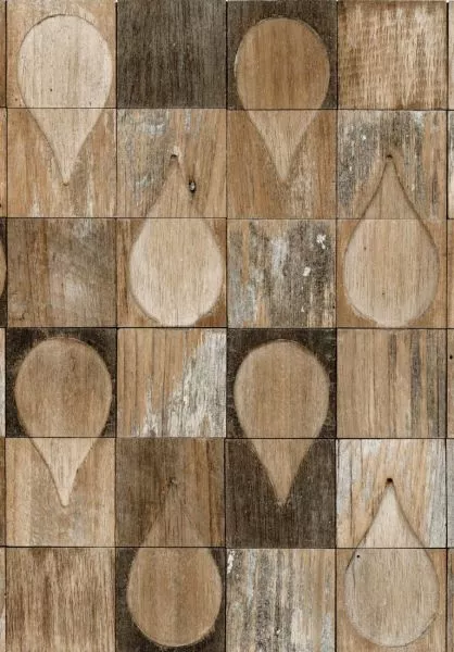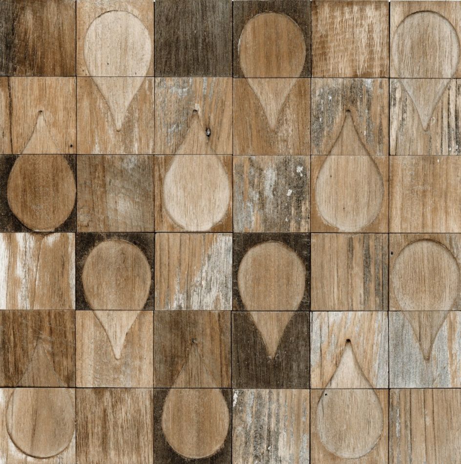 Produktplus: Handgefertigtes Produkt Sehr gut Lichtbeständig Zusammensetzung : 100% Recyceltes Teakholz auf Polyester- Netzträger Pflege : Abwaschbar Abmessungen +/- 3% : Stück 33cm x 33cm Rapport : Gerader Ansatz 33cm Verkaufseinheit : 9 Panele a 33cm x 33cm Gewicht : 3,3 kg pro m²