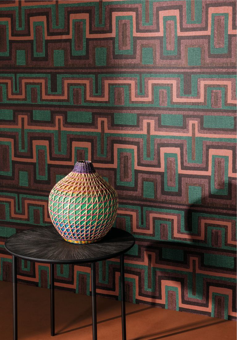 Morelos weist ein zickzackförmiges geometrisches Muster mit verschiedenen Strukturen auf. Wie ein handgewebter Teppich mit den typischen mexikanischen Stufen, aber in einer modernen Version. Matt und Glanz ergeben zusammen ein beruhigendes ethnisches Muster, das sanfte Töne und tiefere, erdige Farben kombiniert.