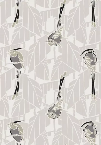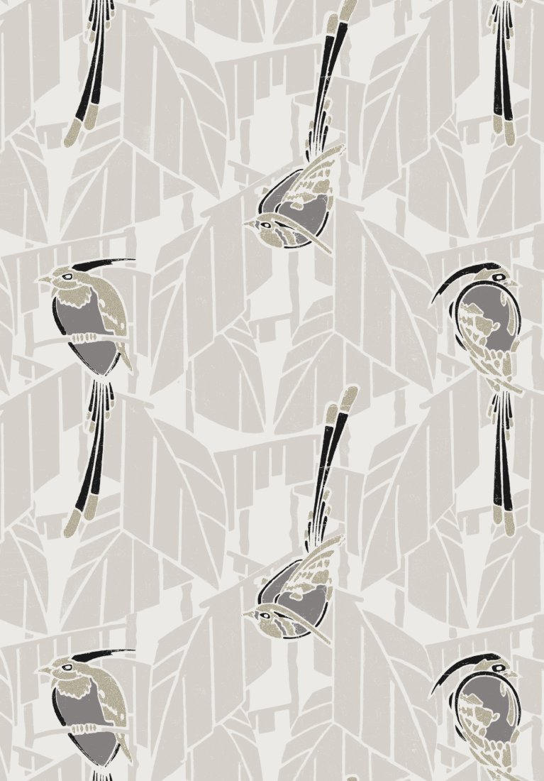 Auf dem Weg von der Figuration zur Abstraktion ergänzen diese Vögel die stilisierten Palmblätter im Hintergrund. Es ist, als ob diese Vögel mit ihren extravaganten Federn von einem Blatt zum anderen springen, was dem KARDINAL-Design ein gewisses Flair und eine gewisse Verspieltheit verleiht.