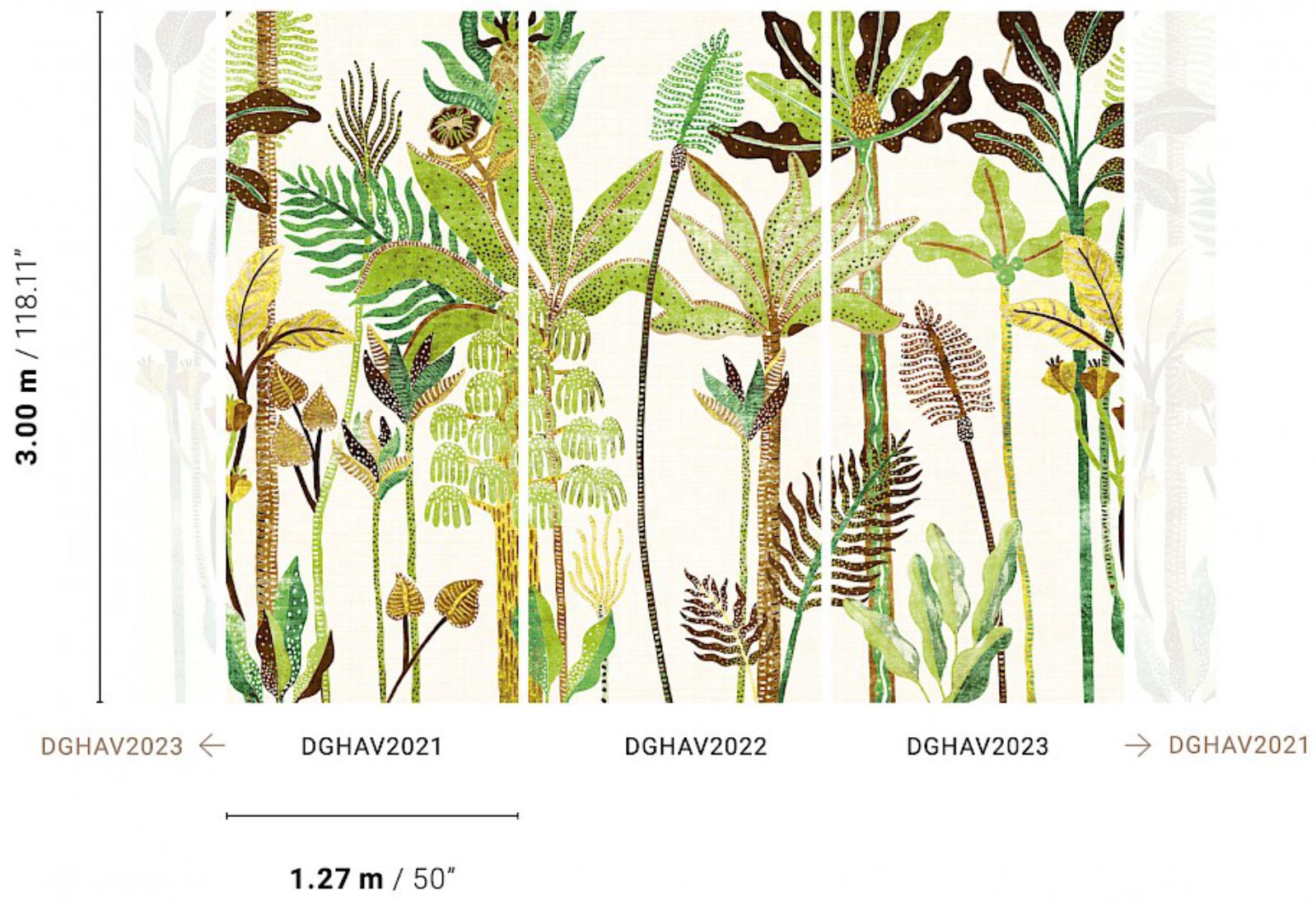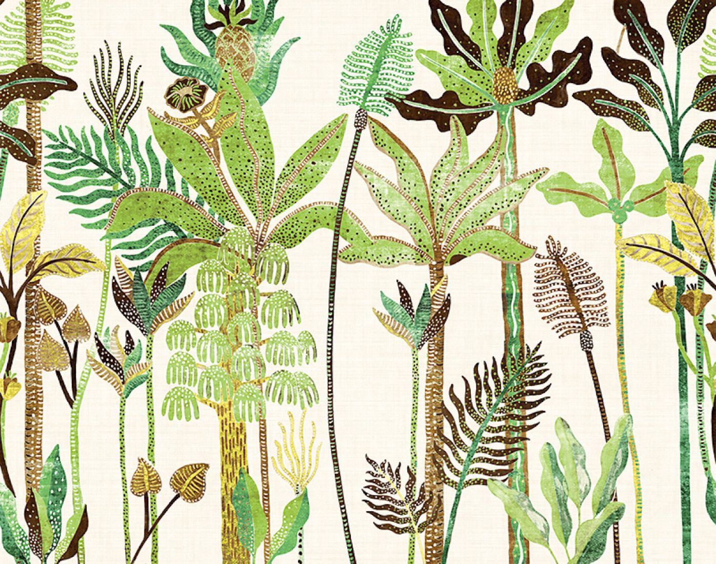 Der Design Parque zeichnet sich durch eine bunte Pflanzenvielfalt aus. Diese digital bedruckte Tapete hat einen beigefarbenen Gewebehintergrund, der einen schönen, unebenen Effekt erzeugt.