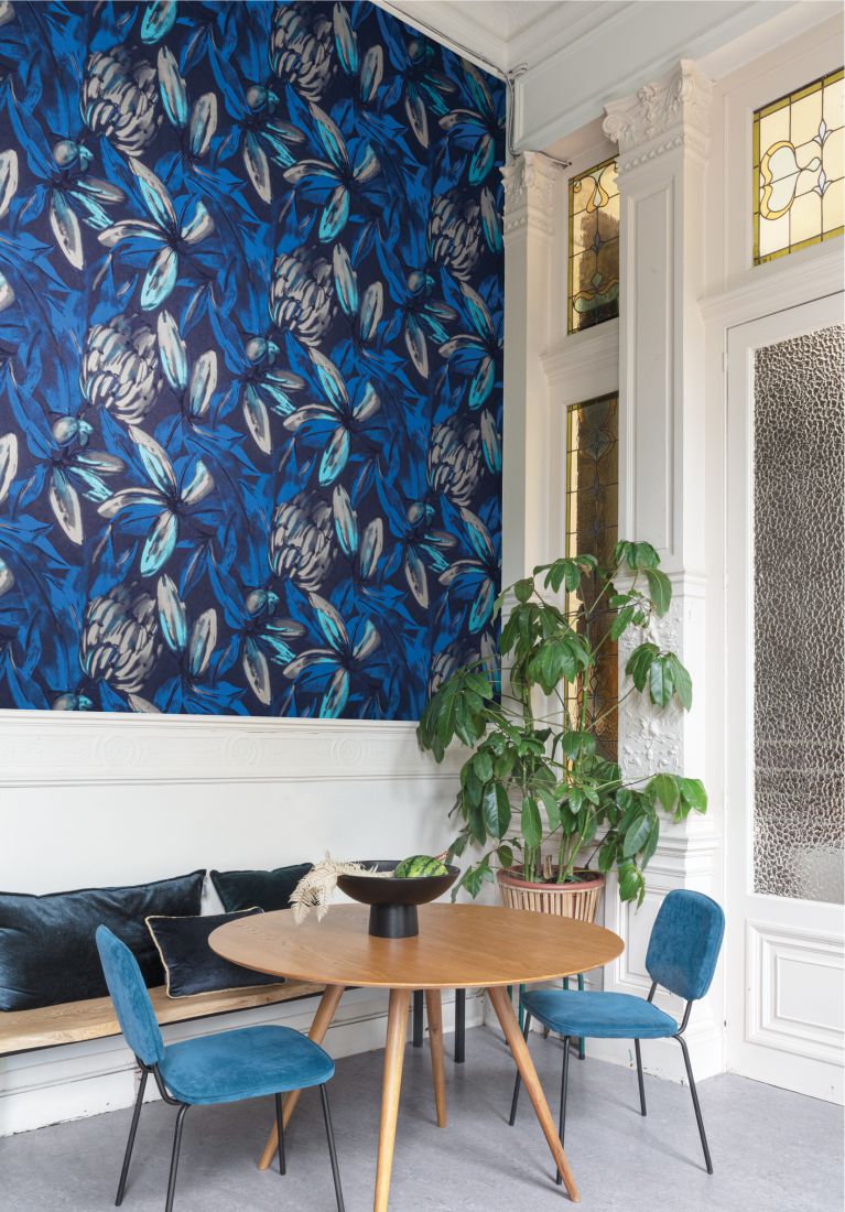 Constanza und Frida, beide handbemalt, versprühen mit ihren leuchtenden Farben und tropischen Früchten Exotik pur. Constanza zeigt einen Mix aus Papayas und Bananenstauden, die fast in Lebensgröße aufgemalt sind. Die Früchte werden durch einen glänzenden Effekt in Szene gesetzt, die Blätter dagegen sind matt gehalten.