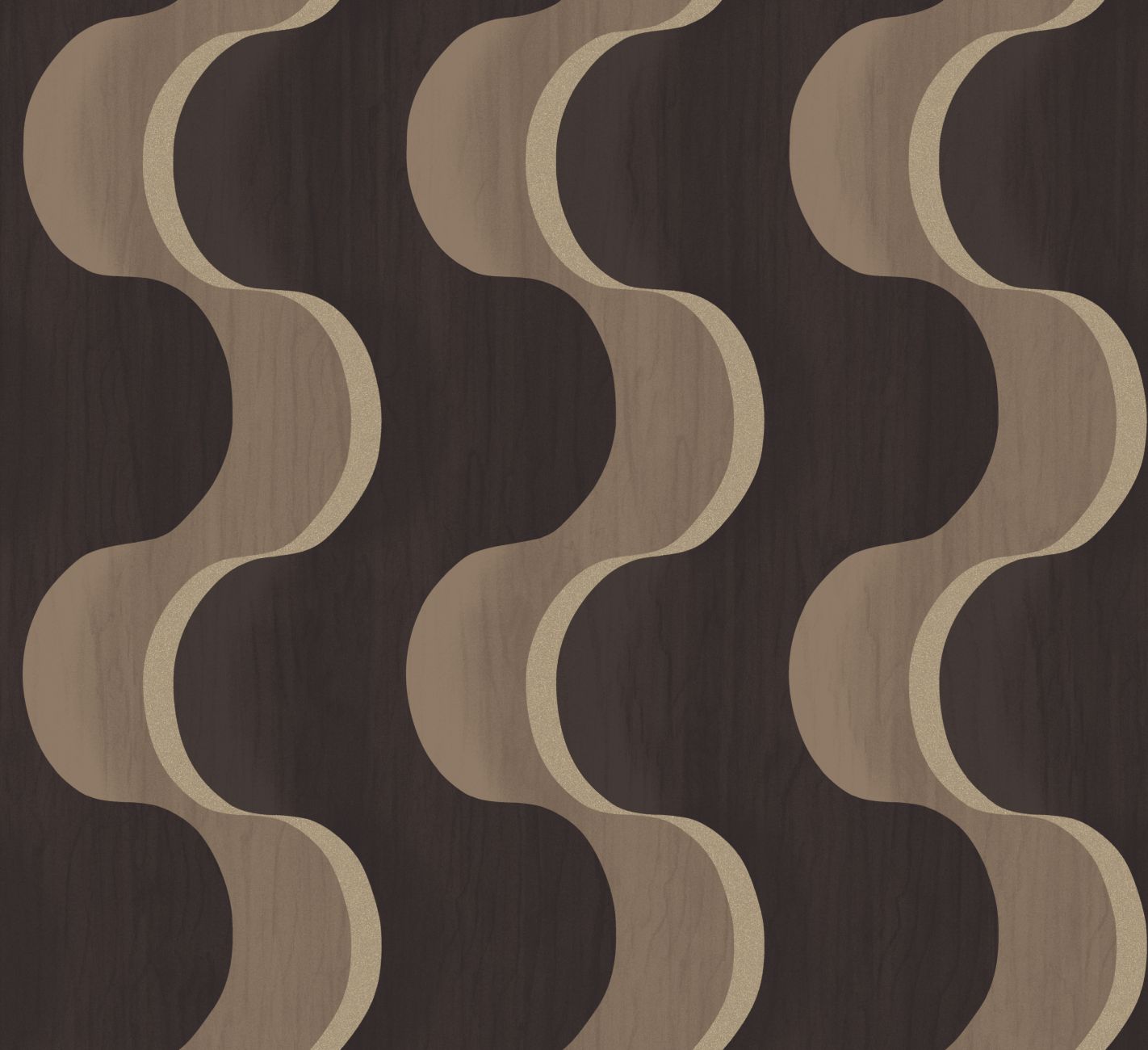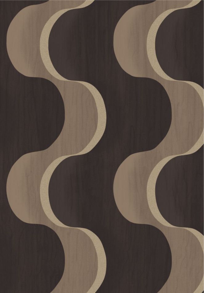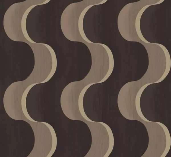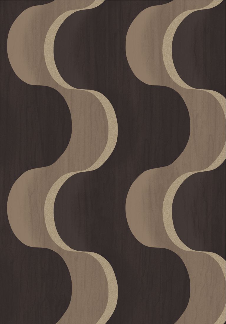 Dieses geschwungene Design, inspiriert von der traditionellen Kunst der Holzvertäfelung, bringt Geschichte an die Wand – jedoch in der Form einer kraftvollen Welle. Der matte, holzähnliche Hintergrund von "Flow" steht im spannenden Kontrast zu den glänzenden Akzenten in Kupfer, Messing oder Metalloptik. Diese metallischen Highlights verleihen der Tapete eine zusätzliche Dimension von Luxus und Eleganz.