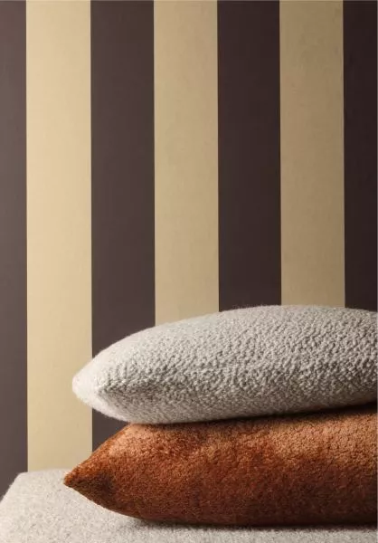 Brody ist eine klassische Streifentapete, doch ihre sehr matte Oberfläche verleiht ihr einen ausgesprochen modernen Charakter. Die klaren, geraden Linien sorgen für eine strenge, aber zugleich elegante Wirkung. Sie ist entweder in dezenten Ton-in-Ton-Farben oder in markanteren, tieferen Farbtönen erhältlich.