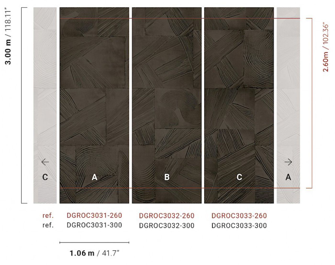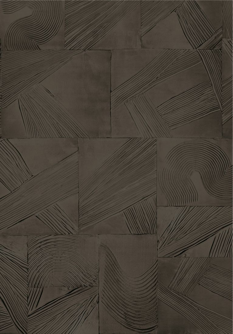 Die Panoramatapete Paros wurde ebenfalls von der Flachrelieftechnik inspiriert. Der skulpturierte Lehmgips wurde in große Blöcke aufgeteilt, um eine monumentale und architektonische Wirkung zu erzielen. Die Schatten und der Effekt der Leinenstruktur, auf der dieses Design gedruckt ist, verleihen ihm zusätzliche Tiefe.
