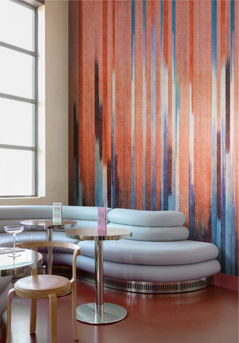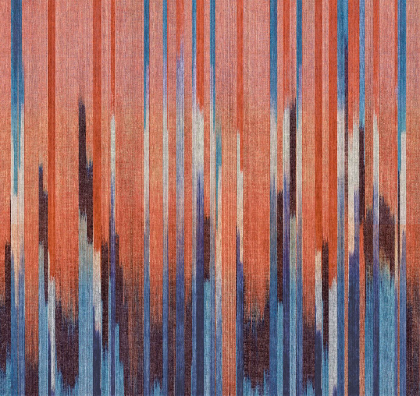 Holi erinnert an die Kunstfertigkeit handgewebter Seiden-Ikats, vergrößert zu einer panoramischen Leinwand.