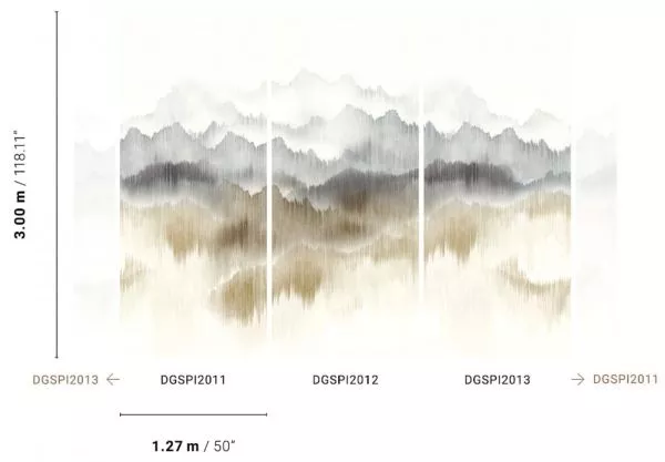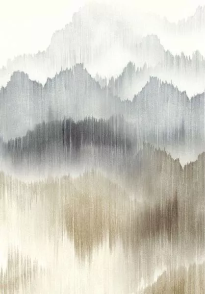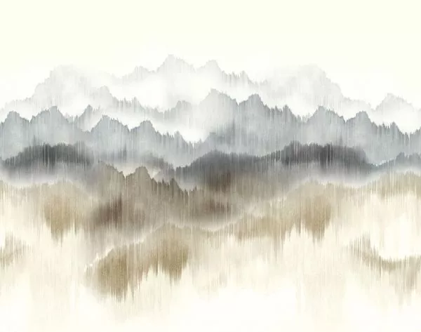 Die Panoramaberge des Entwurfs Vista wurden ursprünglich auf Textilfäden gemalt. Dadurch entsteht ein herrlicher Aquarelleffekt und ein unregelmäßiger Hintergrund, der zusätzliche Tiefe verleiht.