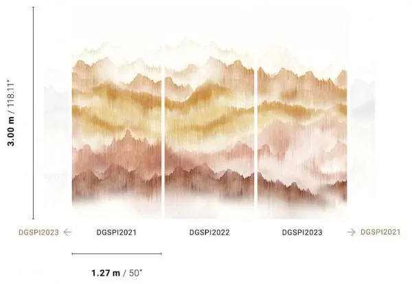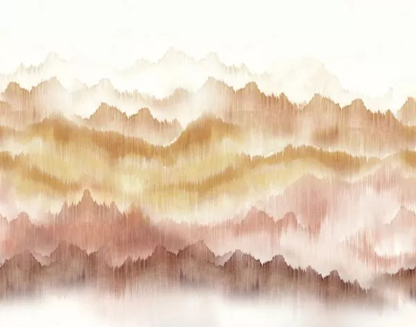 Die Panoramaberge des Entwurfs Vista wurden ursprünglich auf Textilfäden gemalt. Dadurch entsteht ein herrlicher Aquarelleffekt und ein unregelmäßiger Hintergrund, der zusätzliche Tiefe verleiht.