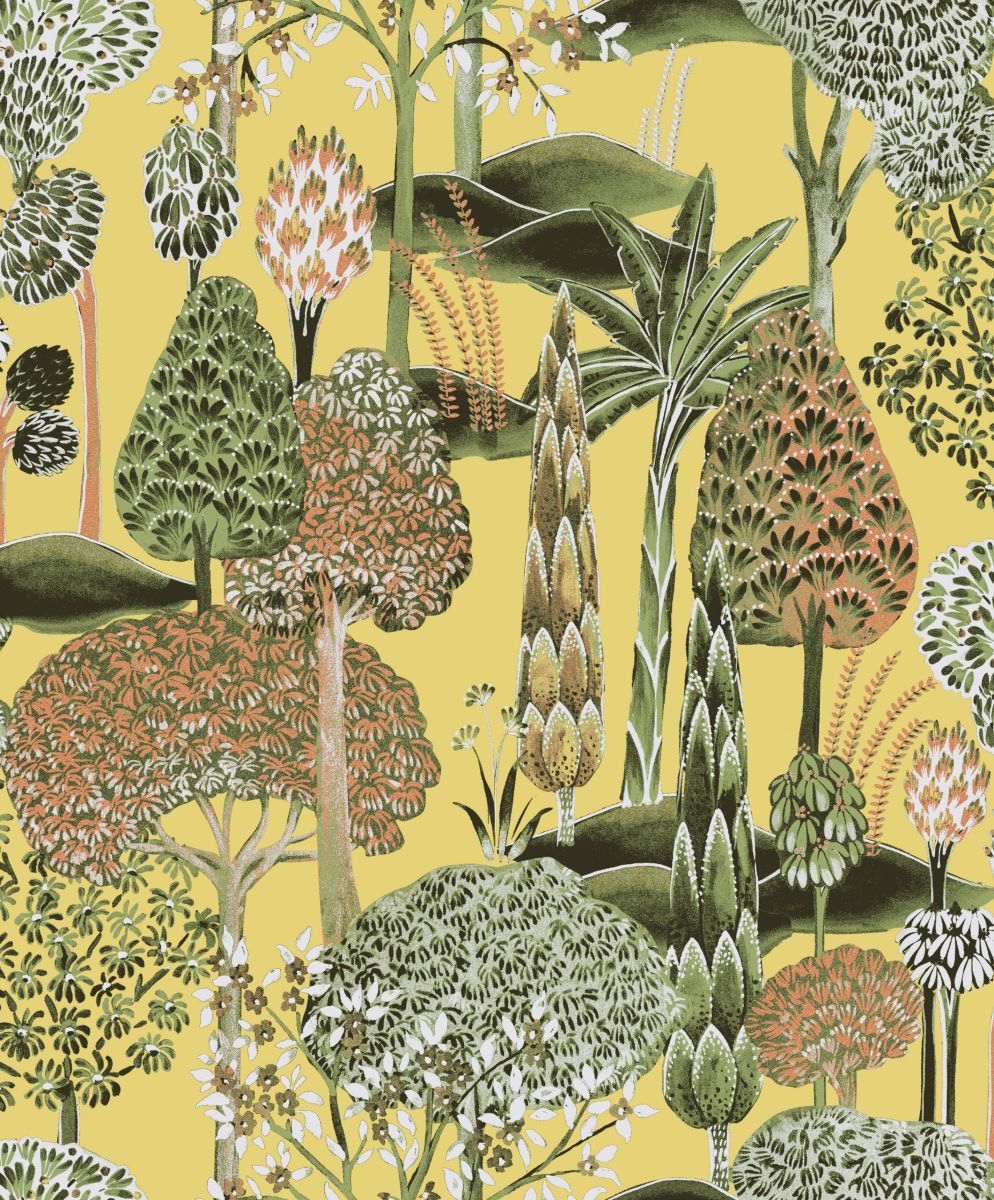 Die handgemalten Bäume in Viray wurden von diversen Miniaturbildern inspiriert. Durch die Kombination der verschiedenen Bäume in einer einzigen Wandverkleidung kommt die Kraft der Natur zum Ausdruck. „Viray“ ist von „Virya“ abgeleitet, einem buddhistischen Wort für Energie. Diese Tapete, die in fünf kräftigen Farben erhältlich ist, strahlt zweifellos einen einzigartigen Spirit aus.