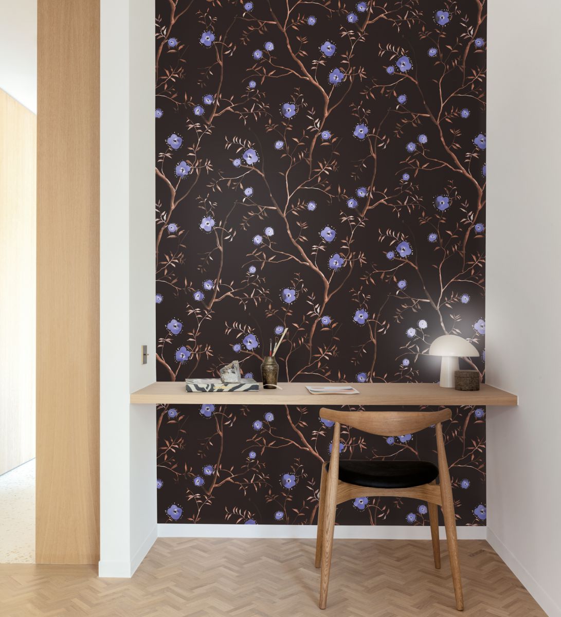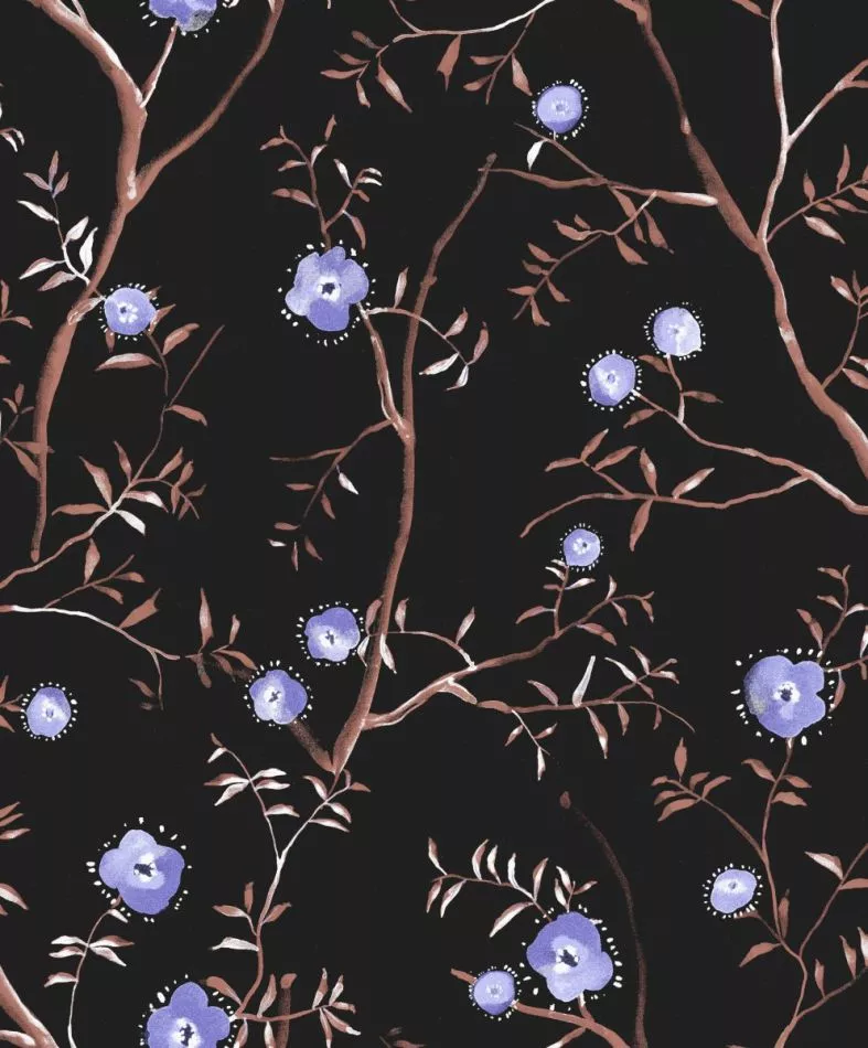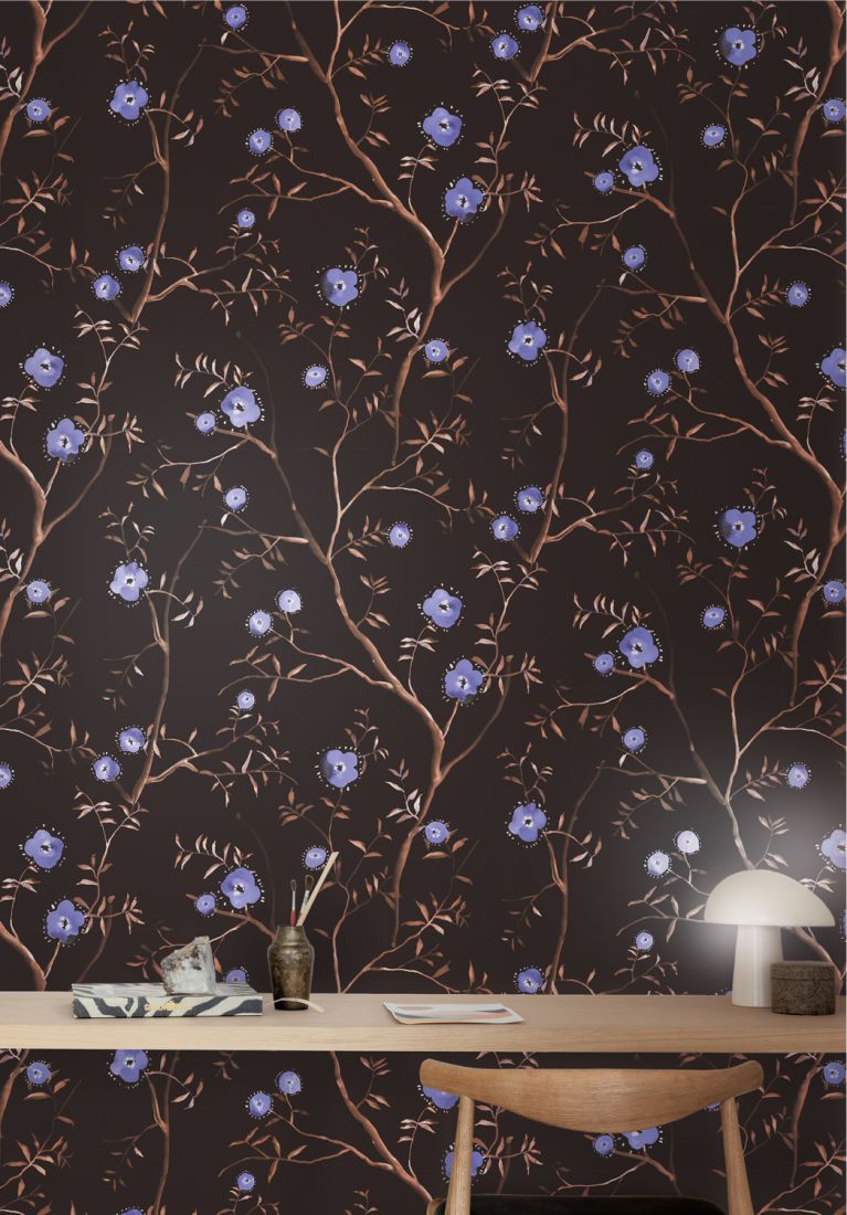 Unsere Tapete Sari mit ihren schönen Blüten verweist auf diese zahlreichen Textildesigns. Ein Sari besteht aus einem traditionellen, fünf bis sieben Meter langen Stück Stoff und ist in Indien das bekannteste Kleidungsstück für Frauen. Die handgemalten Blüten auf unserer Wandverkleidung werden durch einen Glanzeffekt auf den Blumen und einen Unscharf-Effekt an den Blättern und Zweigen abgerundet.