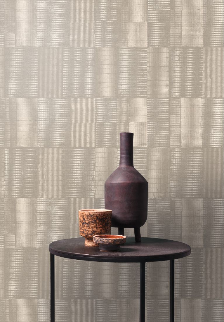 Gyan besteht aus geometrischen Blöcken mit unterschiedlichen Streifen. Das unvollkommene Design erinnert an handwerkliches Blockprinting, bei dem die Tinte nicht immer gleichmäßig aufgebracht wurde.