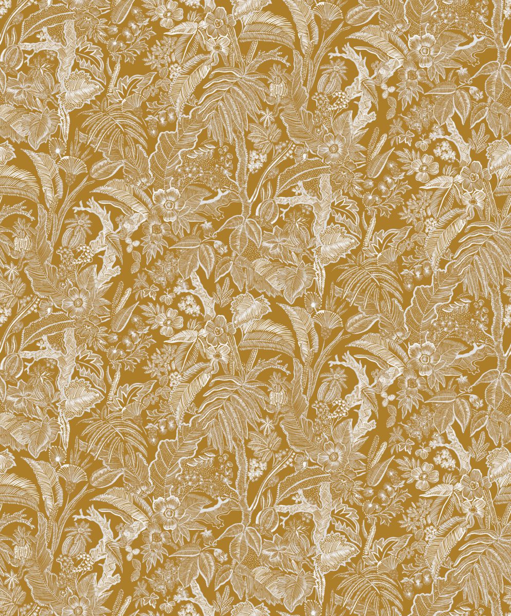 Onikar ist ein herrliches All-over-Design mit einer Strichzeichnung von Blättern und Blumen. Das Modell ist in Blau oder Grün auf schwarzem Hintergrund erhältlich. Sie können aber auch ein weißes Muster auf einem senffarbenen, silberfarbenen, beigen oder graublauen Hintergrund wählen.
