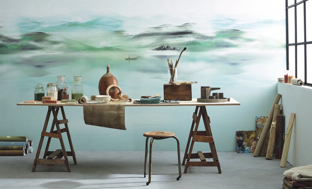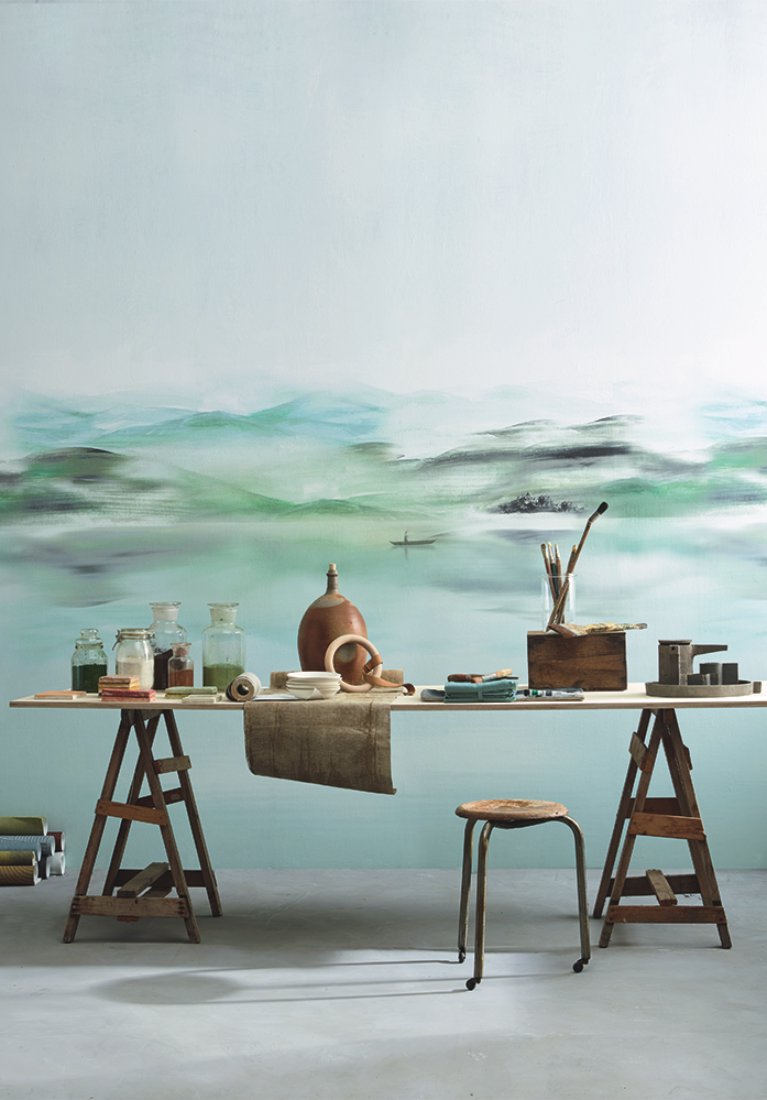 Die digitale Täfelung `Nile´ lässt uns eine kühle Landschaft entdecken, wobei die Berge im Hintergrund durch den feinen Nebel beinahe verschwinden.