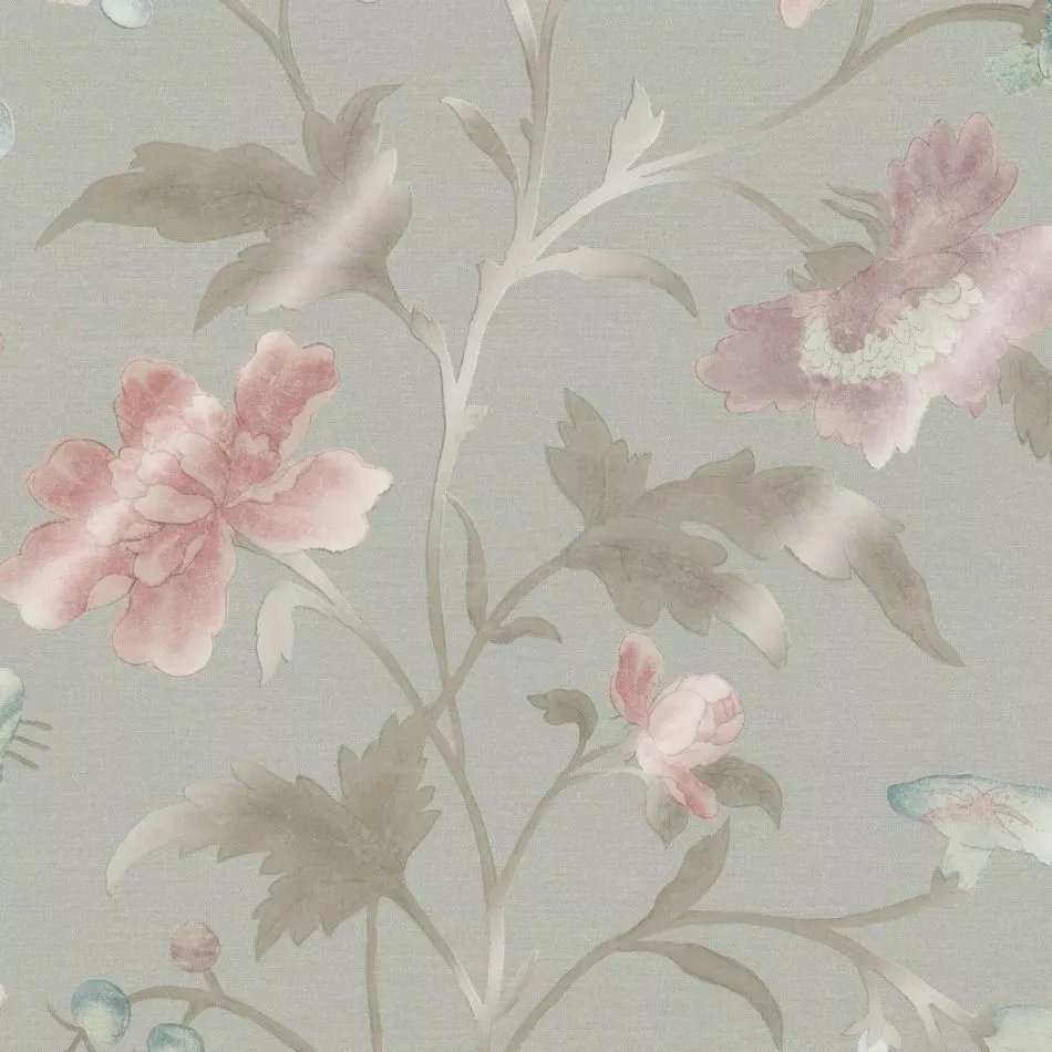China Rose (um 1885) ist ein klassisches extravagantes Blumenmuster aus einem französischen handbemalten „Peking Stripe“ -Stoff aus dem späten 19. Jahrhundert mit einem deutlichen chinesischen Einfluss. Die verzweifelten undurchsichtigen Farben in den Blättern und Blütenblättern zeigen die Hand des ursprünglichen Künstlers, im Gegensatz zu einer vernünftigen modernen Verwendung von Glimmer und Metallic-Tinten, wie sie in einigen Farben zu sehen ist.