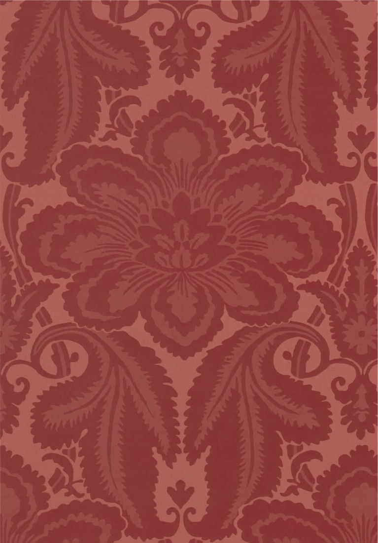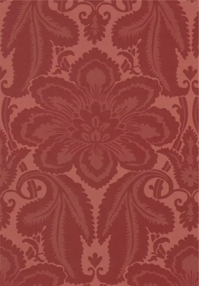 Diese Tapete mit dem grossen sich wiederholenden Muster von 1,80 m Breite wurde in Albemarle Street, einer Seitenstraße von Picadilly, gefunden, und erinnert an die in Spitalfields gewebten Seidenstoffe. Es handelte sich ursprünglich um eine Flocktapete mit einem dunkelblauen Muster auf einem hellen Grund. Eine ungewöhnlich ausdrucksstarke und teure Tapete für ein Schlafzimmer im zweiten Stockwerk mit einer niedrigen Deckenhöhe. Eine so imposante Tapete wurde eigentlich designt, um zur Schau gestellt zu werden – und war häufiger in einem Salon im Erdgeschoss anzufinden, in dem man Gäste empfing.