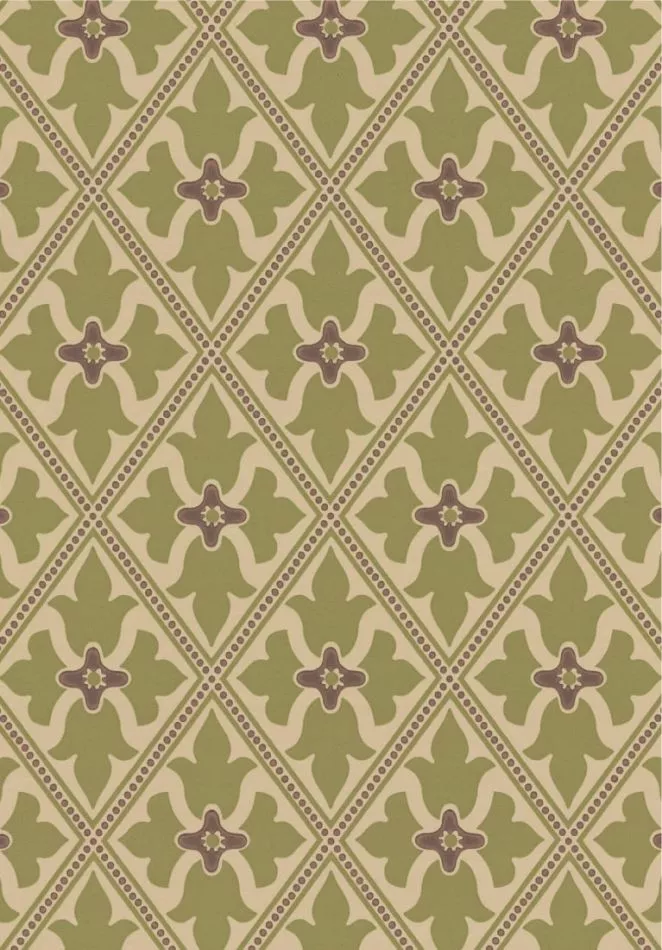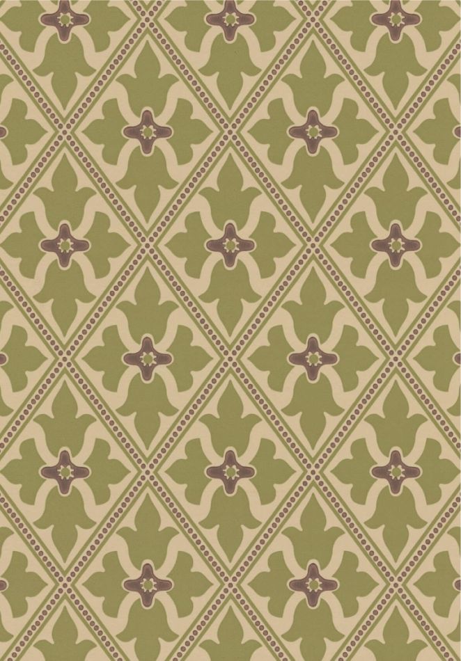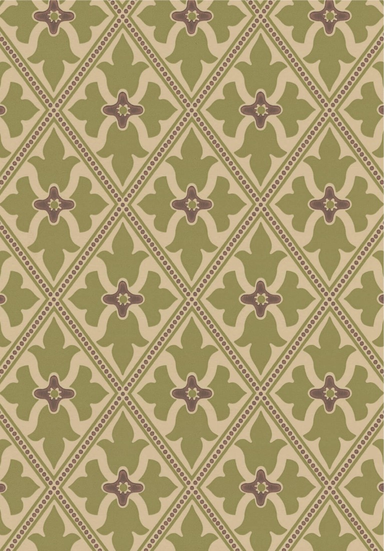 Obwohl das historische Fragment in Bayham Abbey entdeckt wurde, an der Grenze zwischen Sussex und Kent, wurde die Tapete vermutlich in London hergestellt. Die ursprüngliche Tapete wurde aus Holz-Zellstoff hergestellt, maschinell bedruckt und erinnert mit ihrem roten Hintergrund an den gotischen Stil.