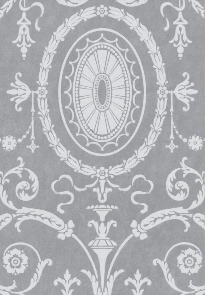 Bei dieser Tapete, der neueren Version des Designs Marlborough, wurde nur eine Druckfarbe verwendet und doch hat sie eine zarte Eleganz. Erstaunlicher Weise stammt die Dokumentation beider Tapeten aus demselben Gebäude, dem Marlborough House am St James’ Park. Das Datum entspricht vielmehr dem voraussichtlichen Ursprung der in Marlborough verwendeten Tapete als den neoklassischen Wurzeln des Designs, die man dem architektonischen Trend des frühen 19. Jahrhunderts zuordnen würde.