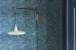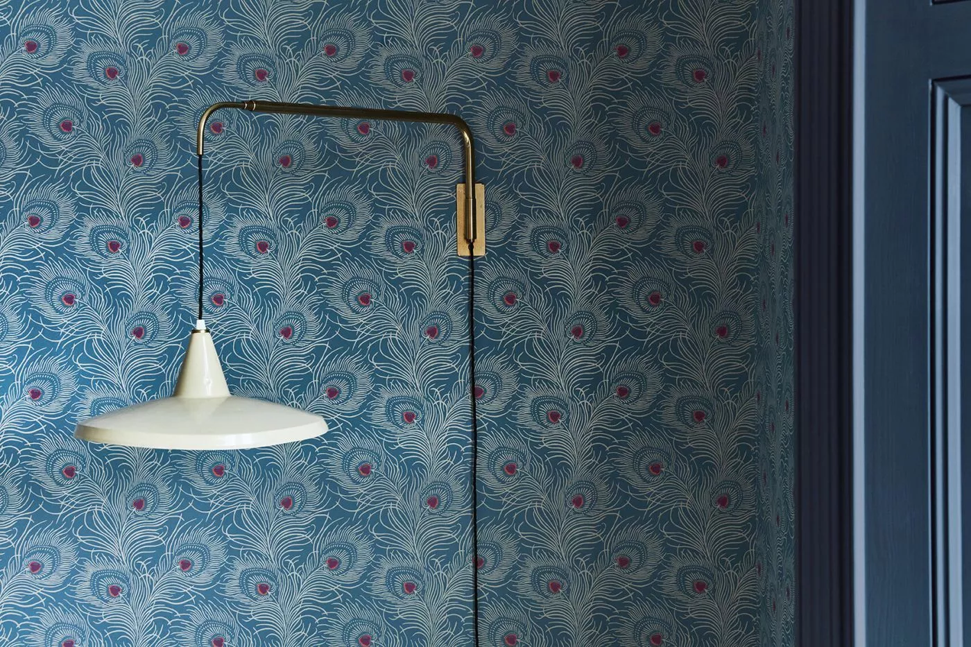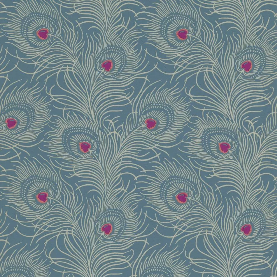 Diese Tapete im farbenprächtigen Pfauenfederdesign wurde im Dachgeschoss von 18 Carlton House Terrace gefunden, einem eleganten Wohngebäude mit langgezogener Stuckfassade und Blick auf The Mall in London. Das Original wurde maschinell in Grün auf gelbem Untergrund gedruckt. Das zu seiner Nachstellung eingesetzte Flachdruckverfahren spiegelt die Anmutung des Originals präzise wider, während ein wohlüberlegter Farbspritzer in der Feder einen Ansatz zur Verankerung eines zeitgenössischen Schemas bietet.