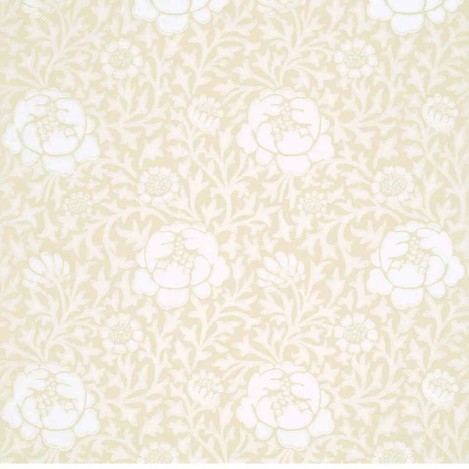 Ein Arts & Crafts Motiv nach Voysey. Dieser war ein Anführer der Bewegung und vielleicht eher als Architekt berühmt denn als Tapeten-Designer. Obwohl diese farbenfrohe Tapete von einem Haus in Kensington aus dem 19. Jhd. entfernt wurde, wird das eigentliche Design auf das frühe 20. Jhd. datiert.
