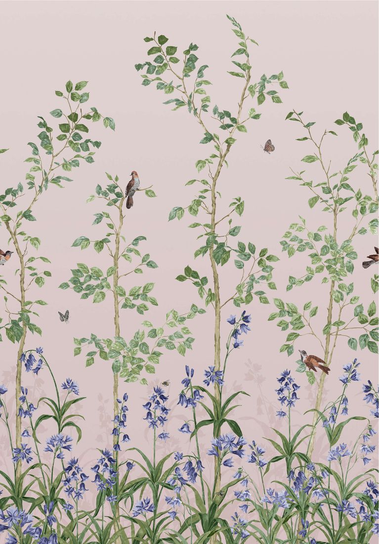 Dieses elegante Wandbild (156 cm x 325 cm) mit Vögeln, Bienen und Glockenblumen wurde aus Resten von Tapetenfragmenten geschaffen, die in Felbrigg Hall in Norfolk gefunden wurden. Ursprünglich auf einem gestreiften Hintergrund dargestellt, wurde das verbliebene Ausgangsmaterial angepasst, umgewandelt und neu coloriert, um es an das zeitgenössische Interieur anzupassen. Erhältlich in vier ruhigen Farben, darunter zartes Grün, Rosa und Blau, sowie in neutralen Tönen.