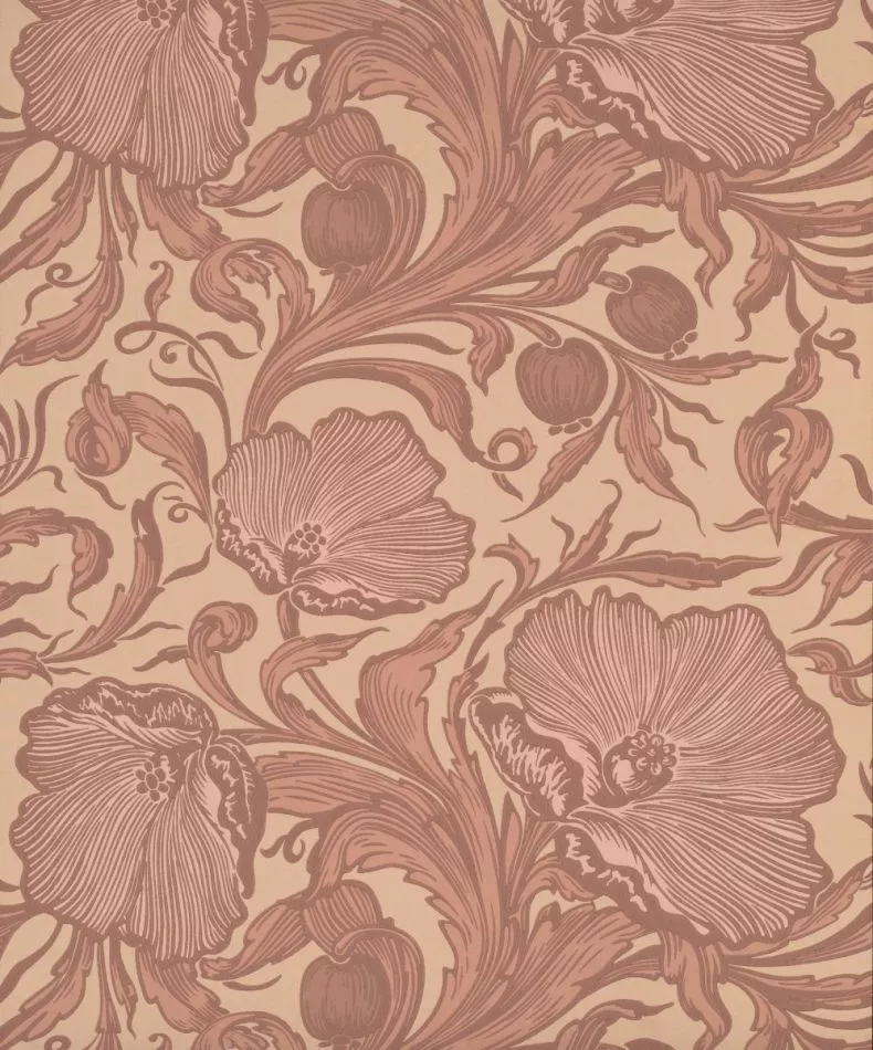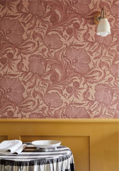 Dieses extravagante florale Design mit großen, stilisierten Mohnblumen ist ein klassisches Beispiel für die Produktion des späten 19. Jahrhunderts. Obwohl der Designer nicht bekannt ist, wird vermutet, dass es sich um ein Werk von Arthur L. Gwatkin handelt, der Tapeten mit einer sehr ähnlichen Anmutung herstellte. Diese Tapete wurde an den Wänden des Korridors gefunden, der zum oberen Ende der Treppe von Felbrigg Hall führt. Auch fanden sich noch ein paar Rollen der Tapete auf dem Dachboden. ‚Poppy Trail‘ ist in fünf Farbtönen erhältlich.