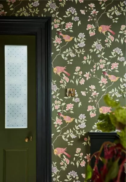 Im späten 18. Jahrhundert war Erddig in Wales das Familienhaus von Philip Yorke und seiner Frau Elizabeth. Sie dürften diese handbemalte chinesische Tapete, die aufwendig mit exquisiten Vögeln und Blumen verziert ist, für das Gästezimmer des Anwesens ausgewählt haben. Das Originalgemälde war zart und filigran gestaltet mit Vögeln, die paarweise auftauchten – ein subtiler Hinweis auf das chinesische Konzept der Verbindung von Gegensätzen (Yin und Yang). Die hier gezeigten Blumen umfassen Magnolien (die weibliche Schönheit symbolisieren) und Pfingstrosen (die Erhabenheit symbolisieren). Zahlreiche Elemente des Originals wurden übernommen und in ein vielseitiges und zeitgenössisches Vogel- und Blumenmuster in fünf besonderen Farbvarianten umgewandelt.