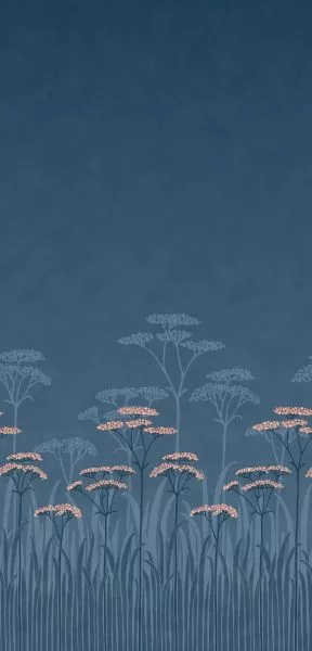 Dies war ursprünglich nur eine Bordüre, von der ein Fragment in der Felbrigg Hall in Norfolk aufbewahrt wird; die Größe des Musters wurde jedoch vollkommen verändert. Mit seinen schemenhaften Stielen und Blütenköpfen der Schafgarbe oder möglicherweise auch der lokal verbreiteten Sumpf-Gänsedistel handelt es sich hier um ein klassisches Beispiel für den Jugendstil; die Farbflächen sind typisch für Siebdruckdesigns. Neben einer radikalen Änderung der Mustergröße und dem Digitaldruck des Designs sorgen die fünf modernen, beeindruckend abgestimmten Farbstellungen von „Achillea“ dafür, dass es sich sowohl als Hintergrund als auch als Eyecatcher in modernen Räumen eignet.