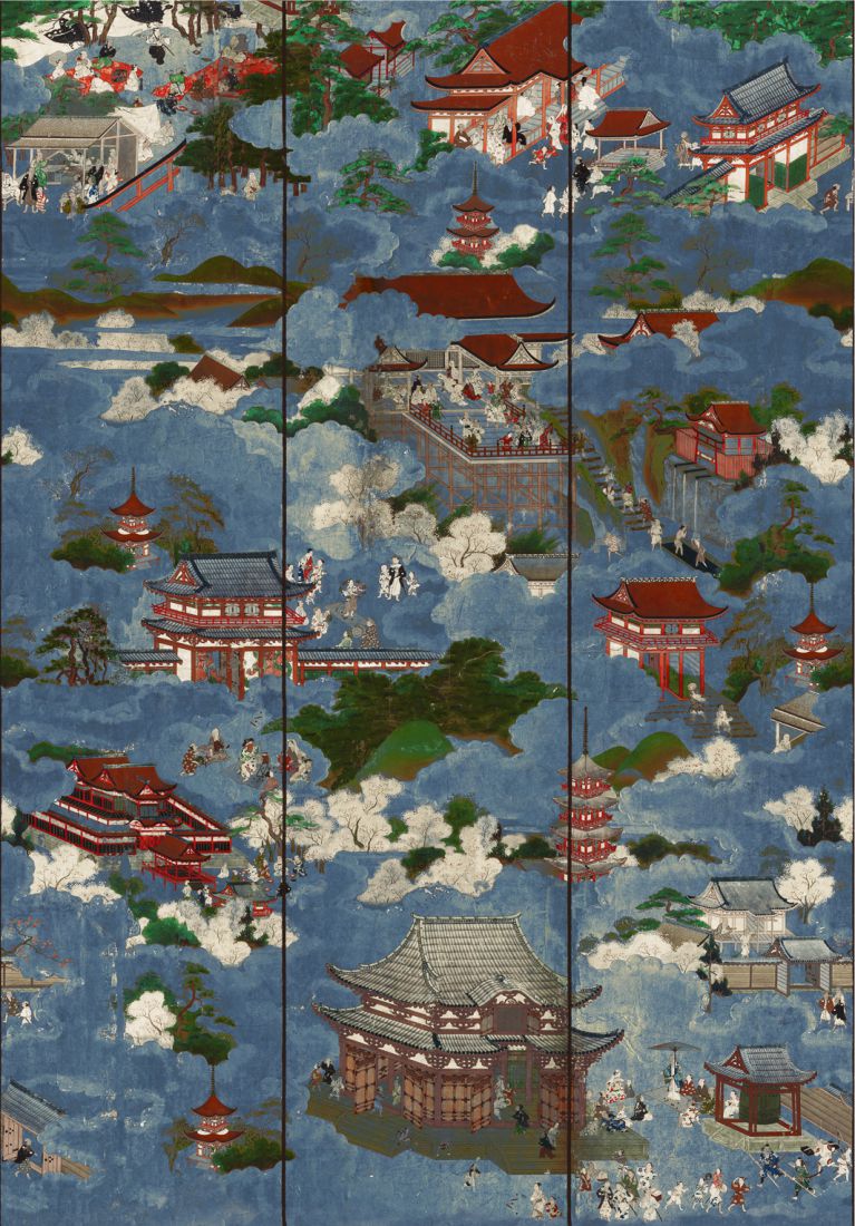 Schweben Sie über dem mysteriösen Land des alten Japan mit FLOATING WORLD, einem Muster, das das tägliche Dorfleben zwischen majestätisch geschwungenen Dächern, flauschigen Blüten sprießenden Bäumen und einer Kulisse aus schroffen Bergen darstellt. Trinken Sie Tee, ziehen Sie Ihr Schwert oder versammeln Sie sich zur Musik in illustrativen Vignetten, die schwerelos am Himmel hängen und eine lebendige Gemeinschaft schaffen, die sich über Wände jeder Größe ausbreiten kann. Jedes Gebäude oder jede Aktivität ist eingebettet in opulentes Gold oder stimmungsvolle, mittelblaue Wolken für die bezauberndsten Expeditionen in den Osten.
