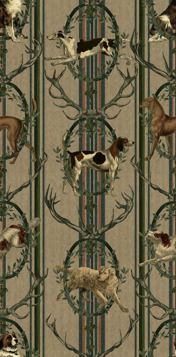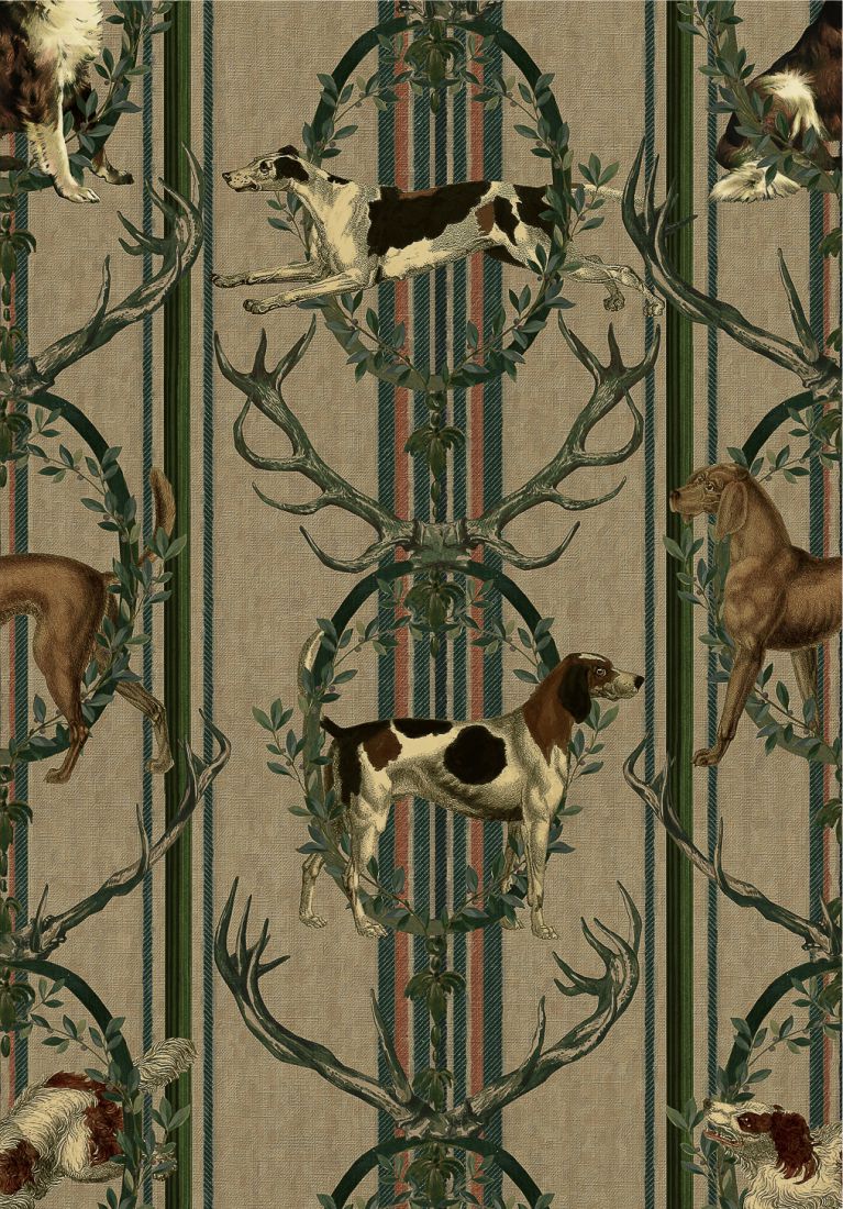 Loyal, agil und intelligent, es gibt einen Grund, warum Alpenhunde unter den weltweiten Rassen so berühmt sind. Dieses verspielte Muster feiert den Geist dieser treuen Gefährten mit einem Paar edler Jagdhunde, die über einen gestreiften Hintergrund springen. Belaubte Girlanden, majestätische Geweihe und ein schicker Streifen vervollständigen das schöne MOUNTAIN DOGS-Design.