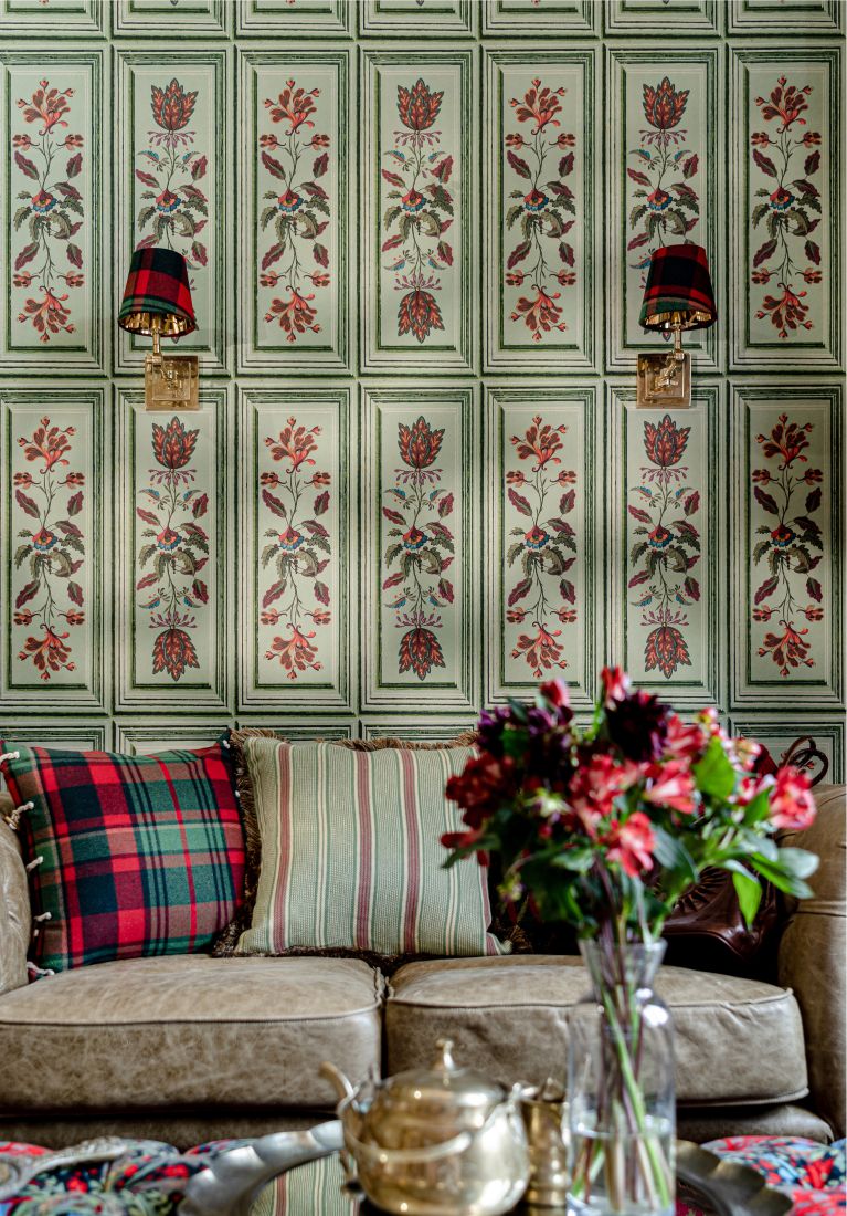 Bei einigen unserer Wandbekleidungen wird das Muster in großem Maßstab erstellt, wobei jede der drei Rollen unterschiedlich, geschnitten und aufeinander abgestimmt ist, um ein mutiges, perfektes Wandbild zu gewährleisten.